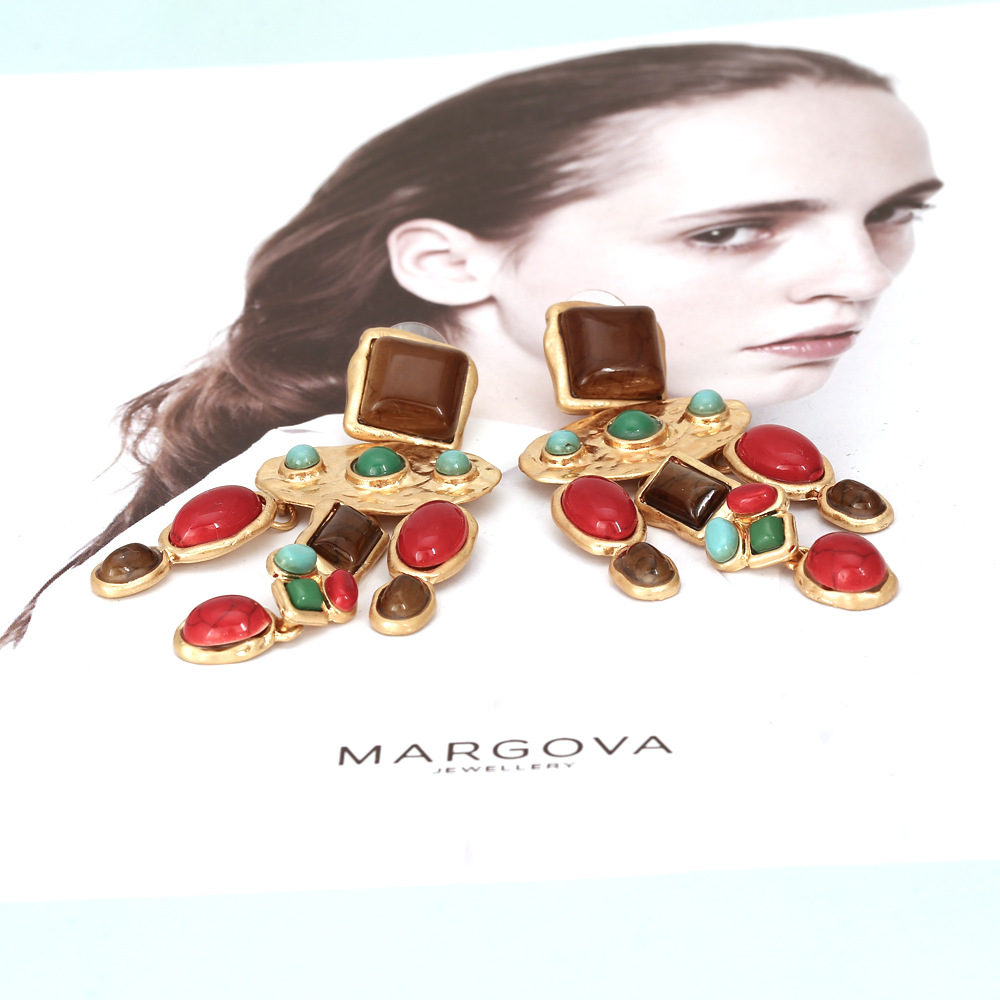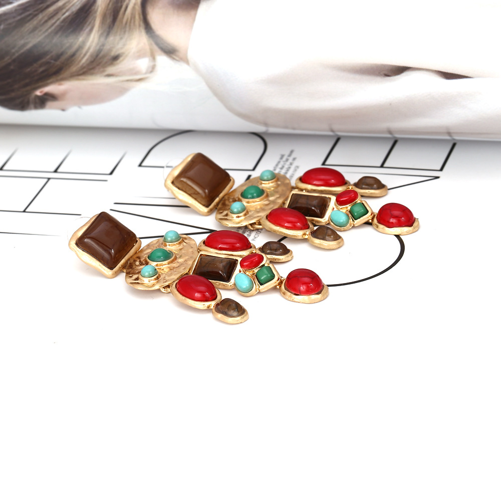 Material: Alloy Style: European and AmericanStyle: Women'sShape: drop shapeTreatment process: inlaid gemsInlay material: alloy inlaid artificial gems/semi-precious stones