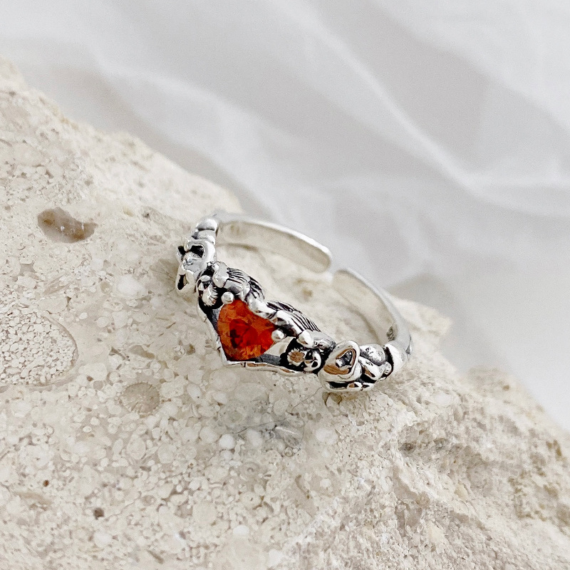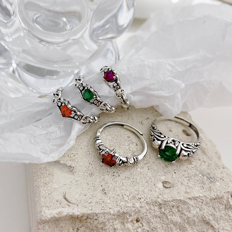 925 Sterling Silver Pentagram Multicolor Zircon Ring