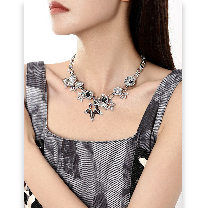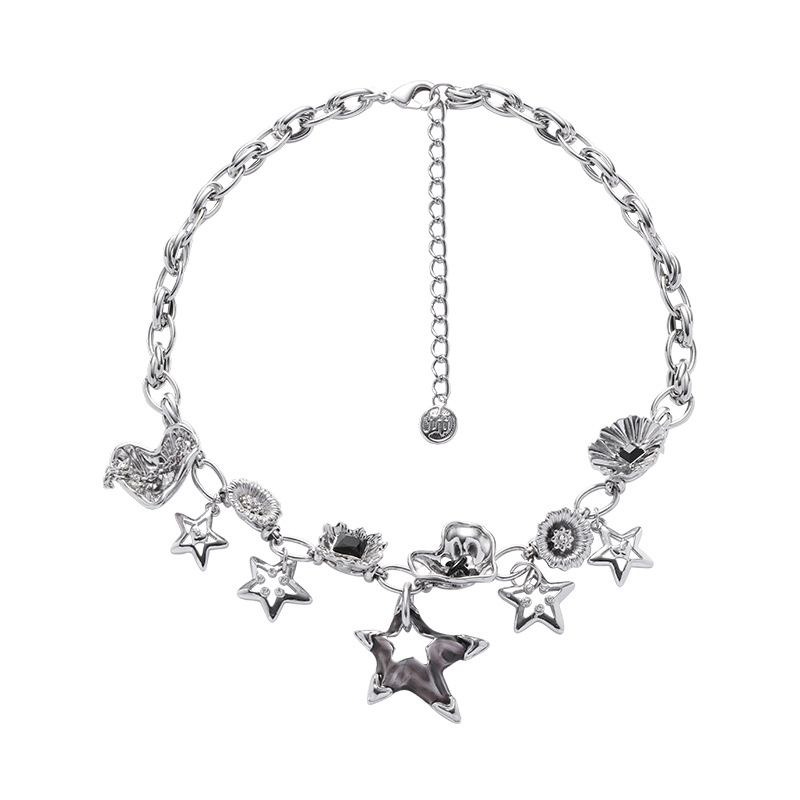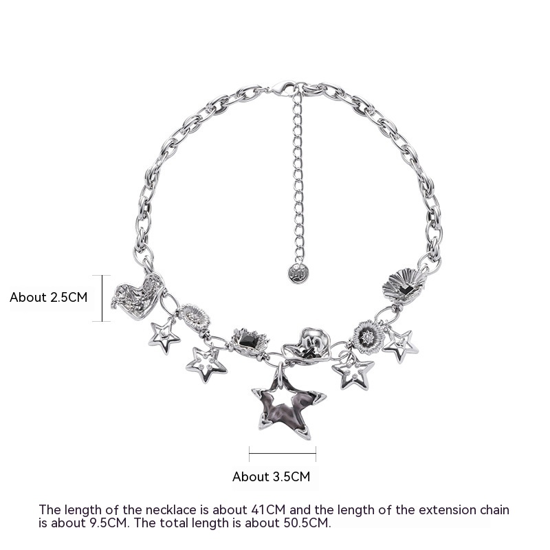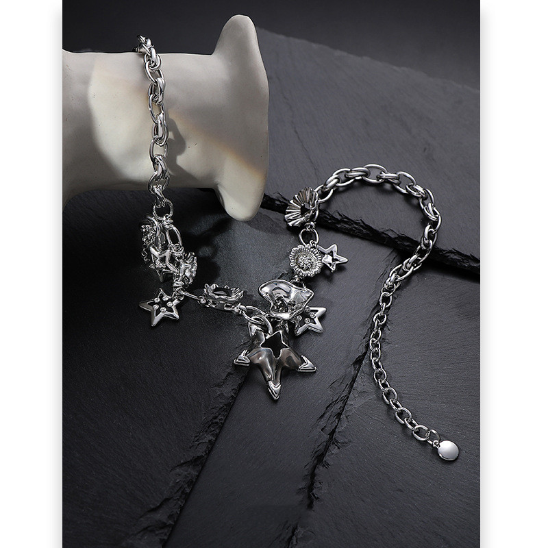 Product information:Treatment Process: Electroplating Color: Silver necklace-NK333812 Applicable population: Female Pendant material: Alloy Material: Alloy Popular elements: five-pointed star Style: Original design