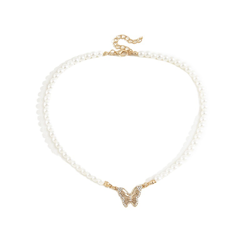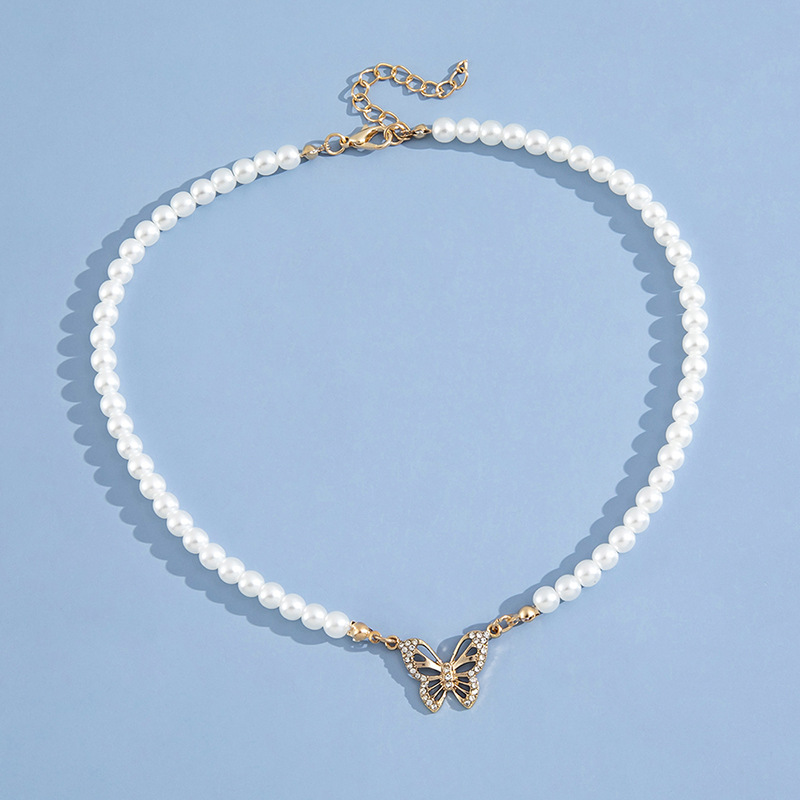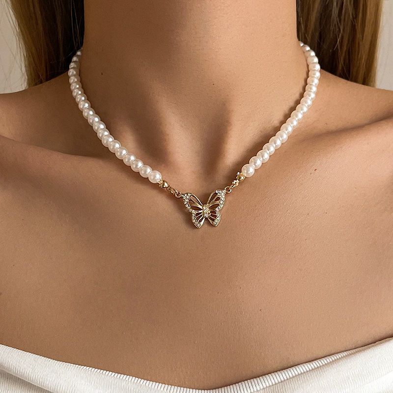 Ladies Simple Design Pearl Butterfly Necklace