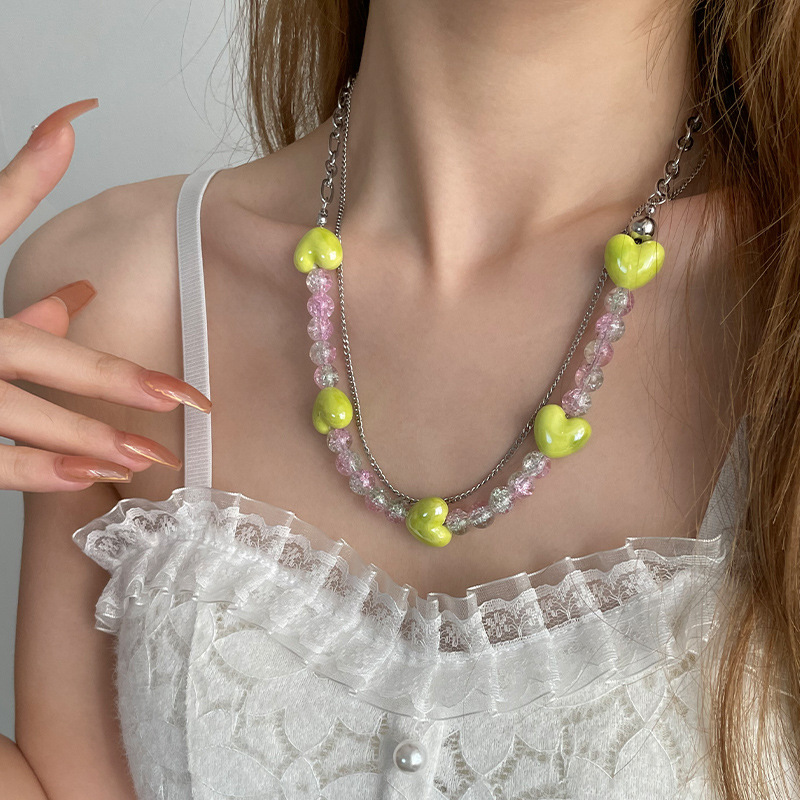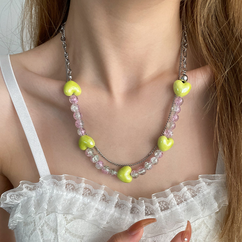 Product information:Color: Love ice crack beads necklaceApplicable people: womenChain style: cross chainMaterial: titanium steelShape: heart-shaped, geometricPopular elements: Sphere, love heart/heart shapeStyle: sweet and cool
