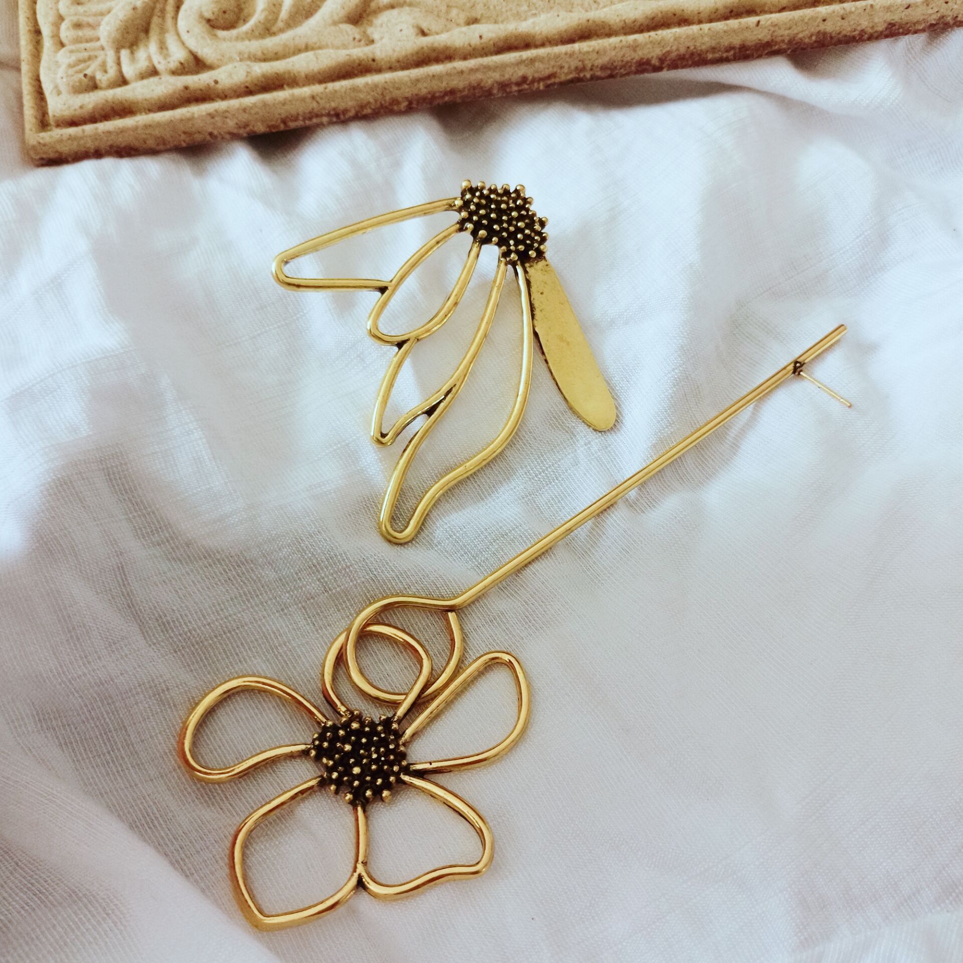Retro exaggerated flower asymmetric Earrings