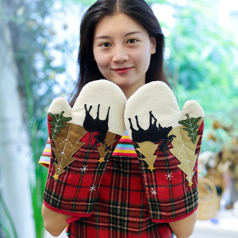 Size: Christmas gloves: 34 cm high and 20 cm wide; Christmas apron: 77 cm high and 54 cm wide