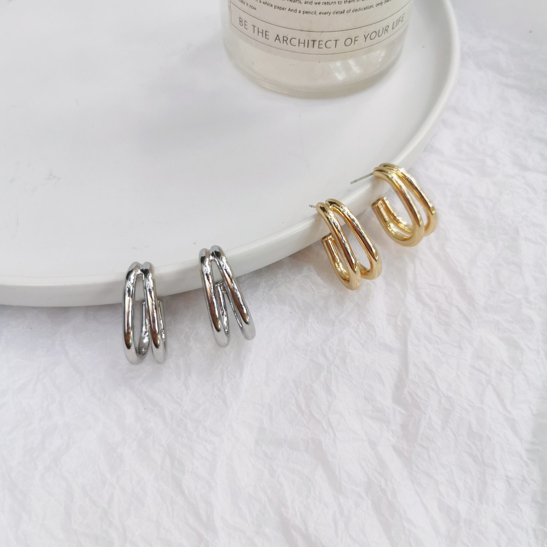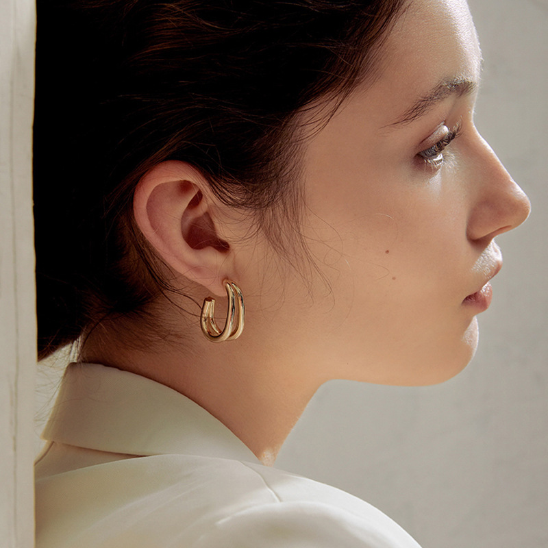 Female Curved Silver Stud Earrings
