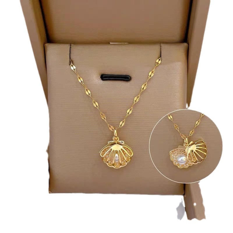 Product information:Treatment Process: Electroplating Color: 362 full shell necklace-Gold Applicable population: Female Chain style: water wave chain Material: titanium steel Shape: Geometry Popular elements: Shell