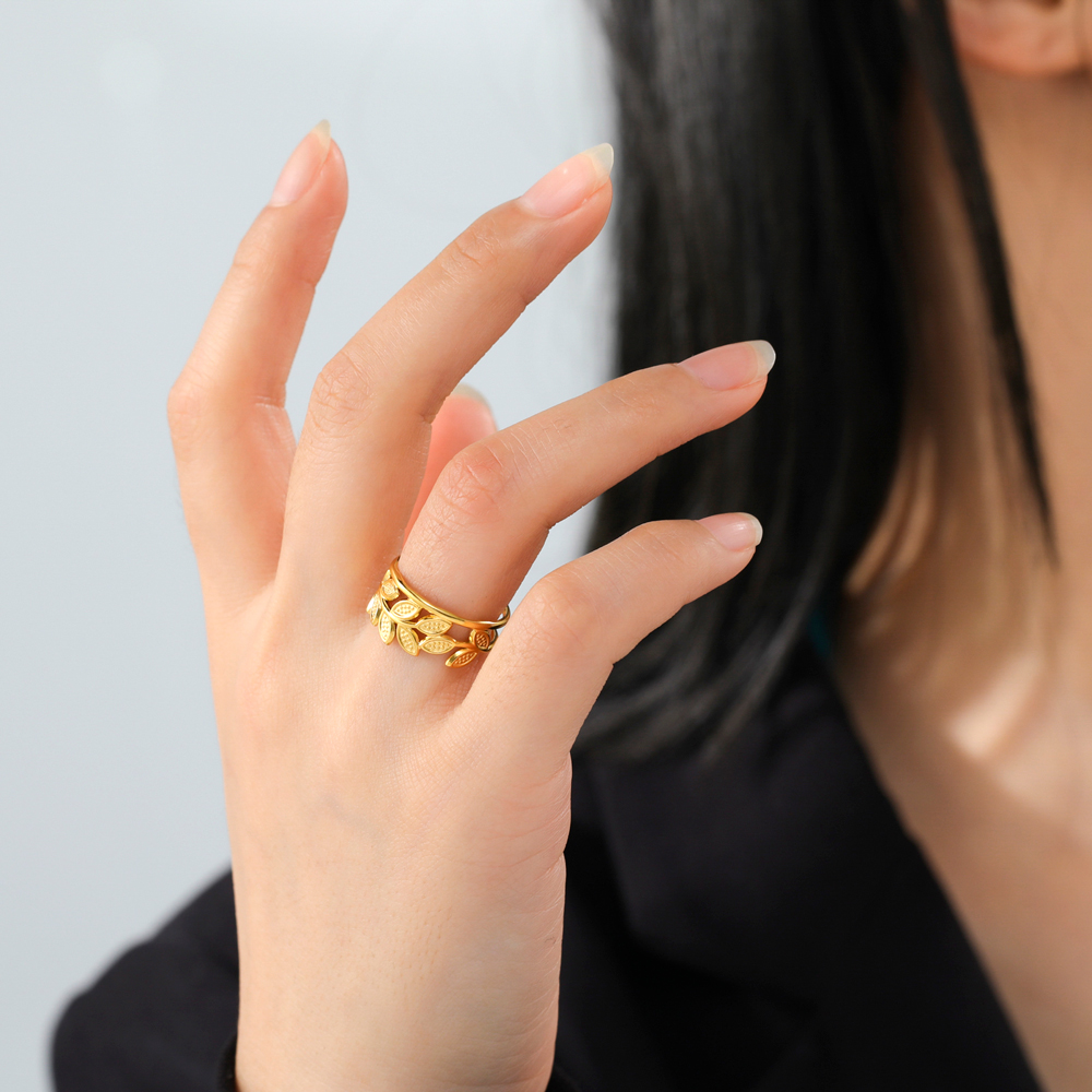 Product information:Type: RingMaterial:stainless steelShape: leavesStyle: unisexColor: gold, platinumSize: adjustable openingPacking list:Ring X1PCS