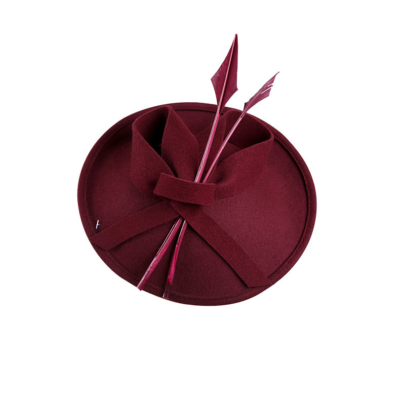 Material: woolWeaving method: plain weavePopular elements: feathersPattern: FlowerHat top style: domeHat style: no eaves