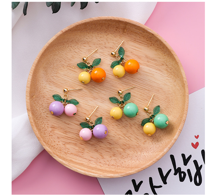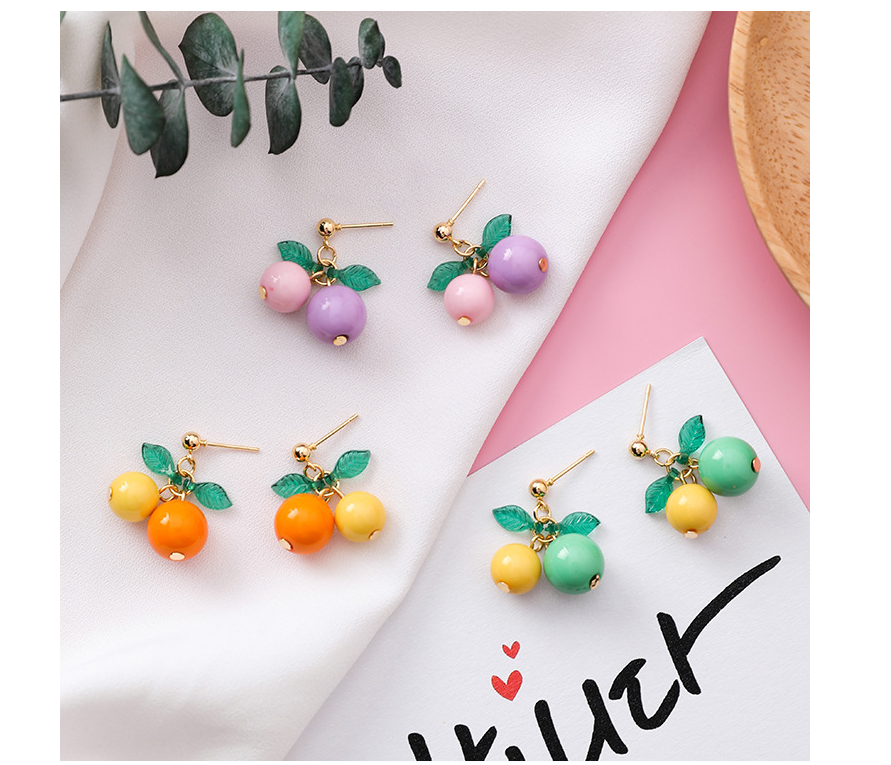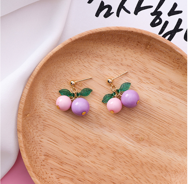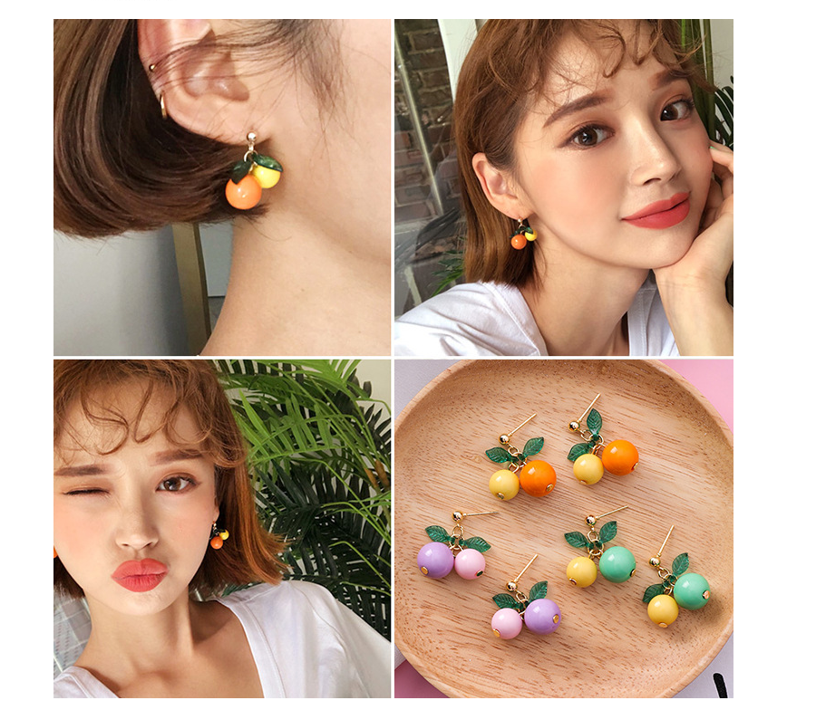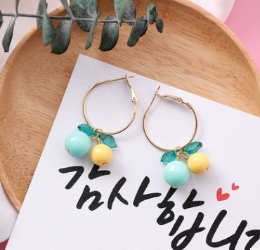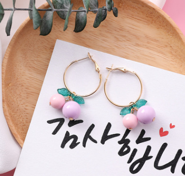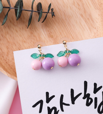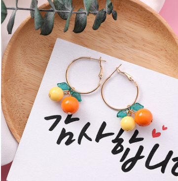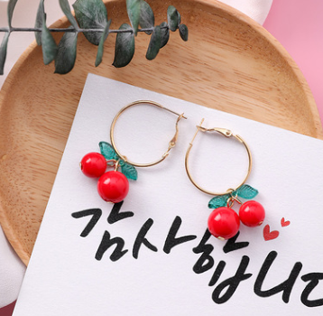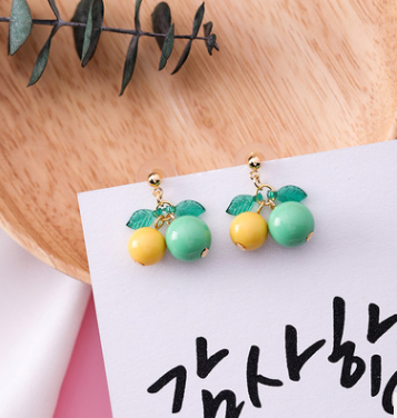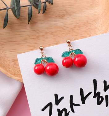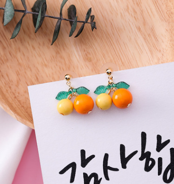 Korean sweet cherry fruit earrings compact simple girl heart short orange earrings
