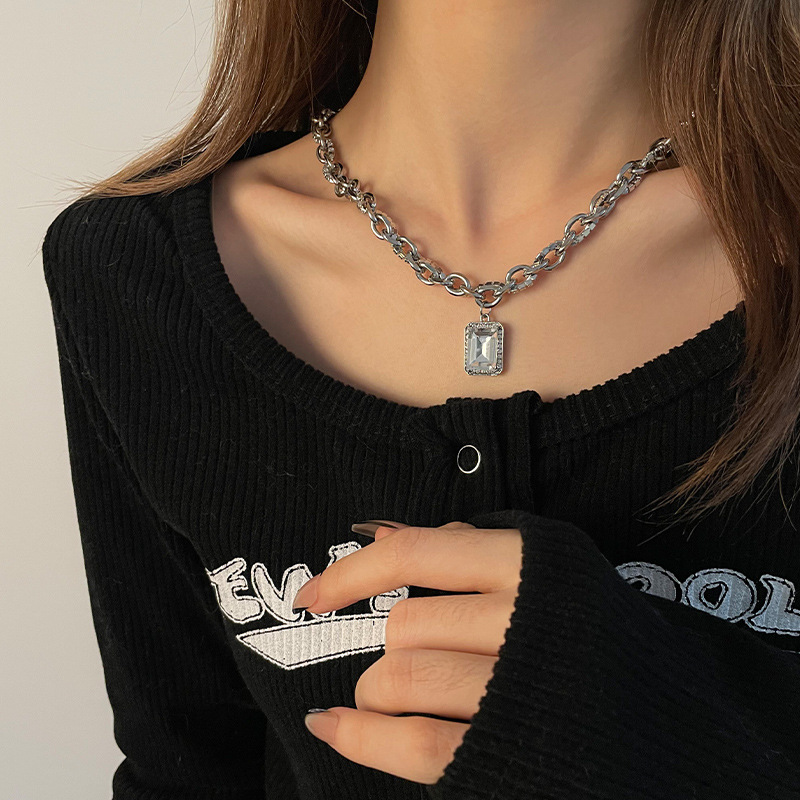 Product information:Color: white diamond winding full diamond necklaceApplicable people: UnisexPendant material: AlloyChain style: cross chainMaterial: titanium steelShape: GeometricStyle: unisex style