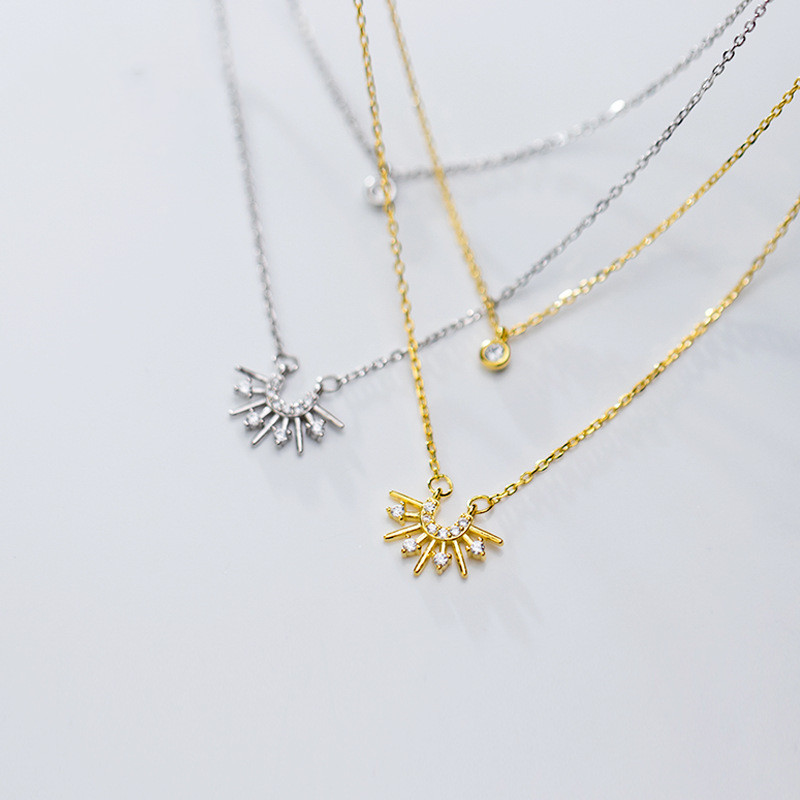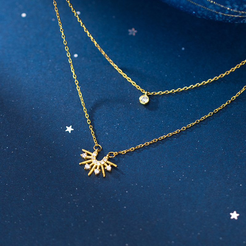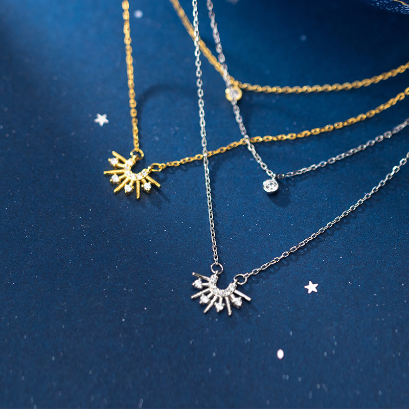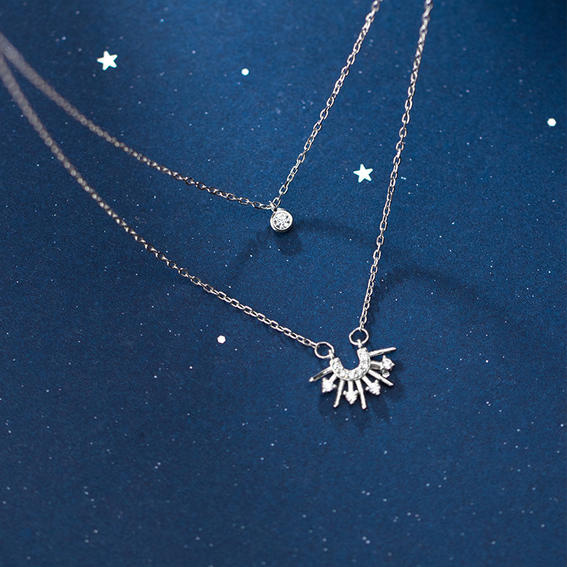 Diamond sun necklace double clavicle chain