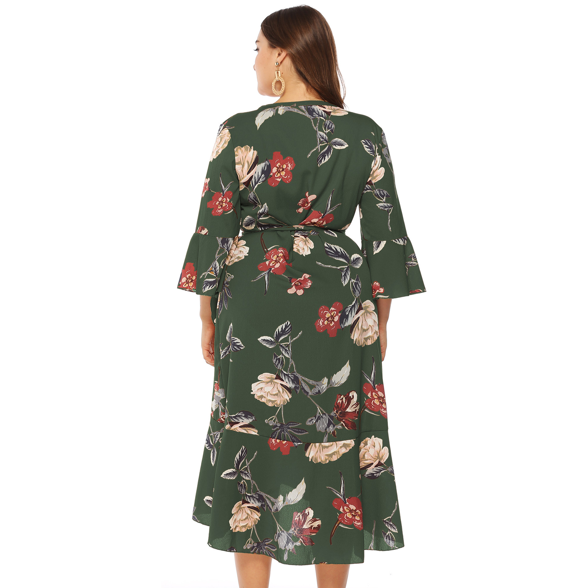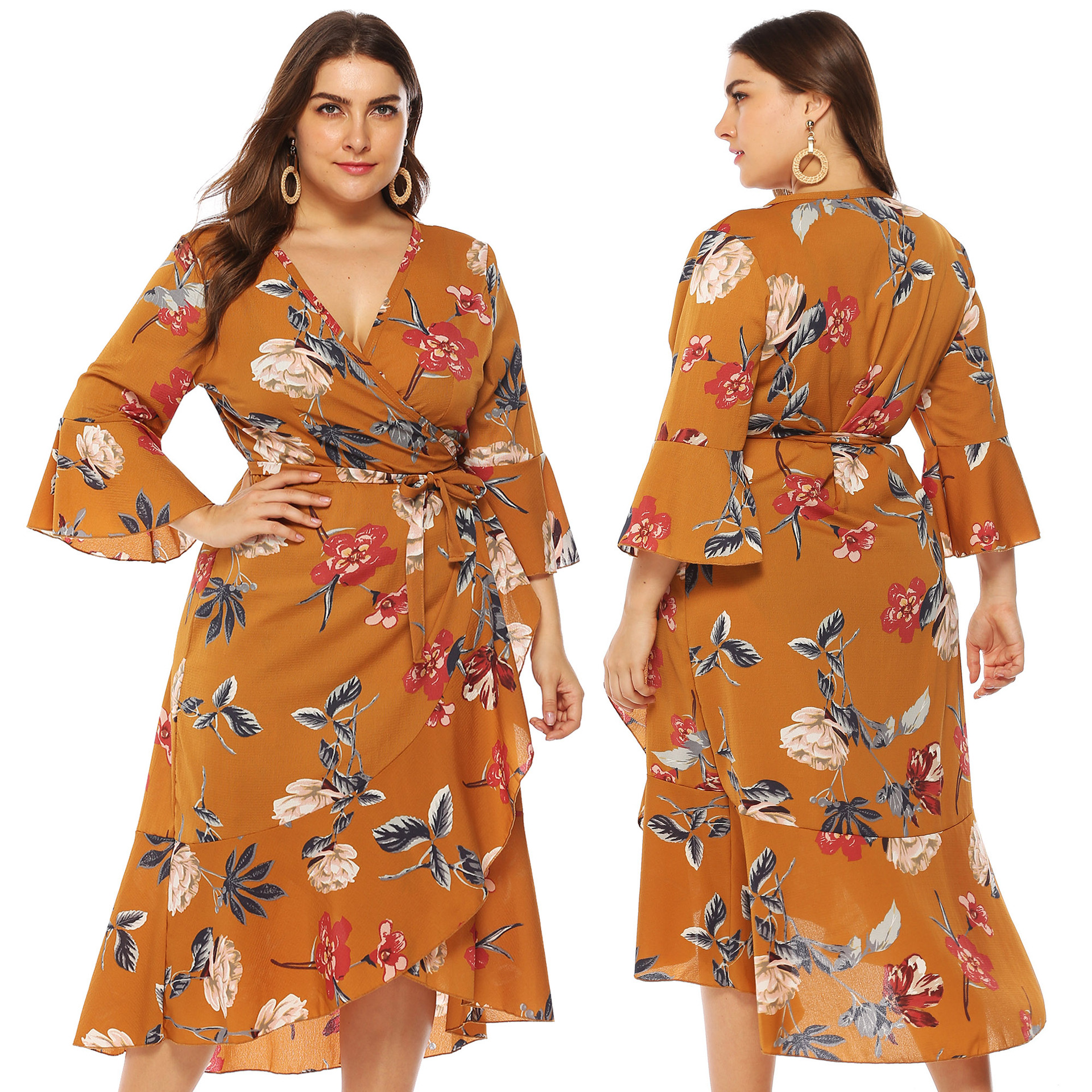Irregular cross strap deep V dress