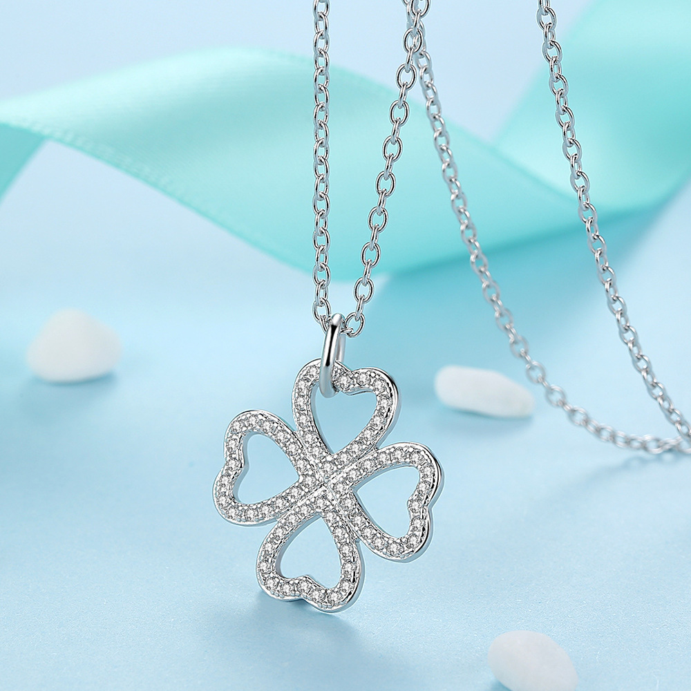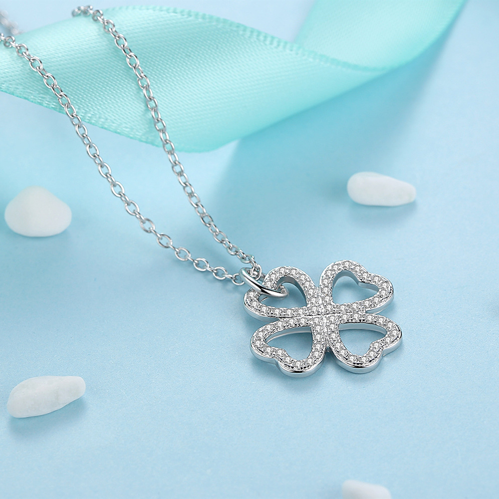 Four-leaf clover hollow diamond necklace