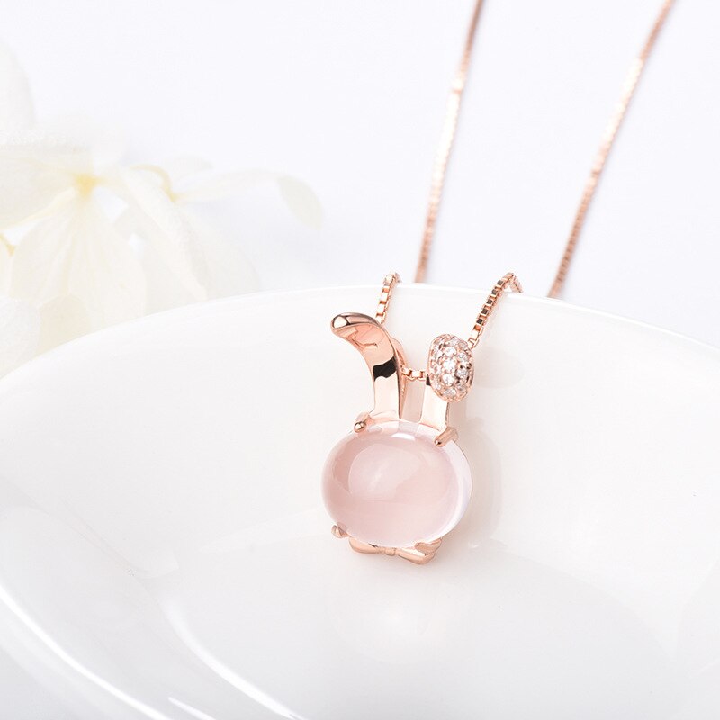 Color : Rabbit powder crystal pendant [without chain] white copper plated rose gold, pendant + necklace [without gift box] white copper plated rose gold, rabbit powder crystal pendant [without chain] white copper plated platinum, pendant + necklace [without gift box] White copper plated platinum, rabbit powder crystal earrings [with ear plug] rose gold plated, rabbit powder crystal earrings [with ear plug] white gold plated