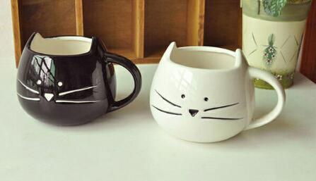 The ceramic mark cup creative cute simple couple to a cup of milk coffee cup black and white cat