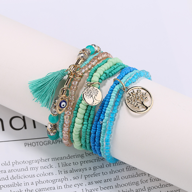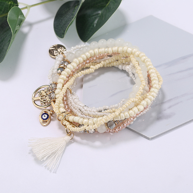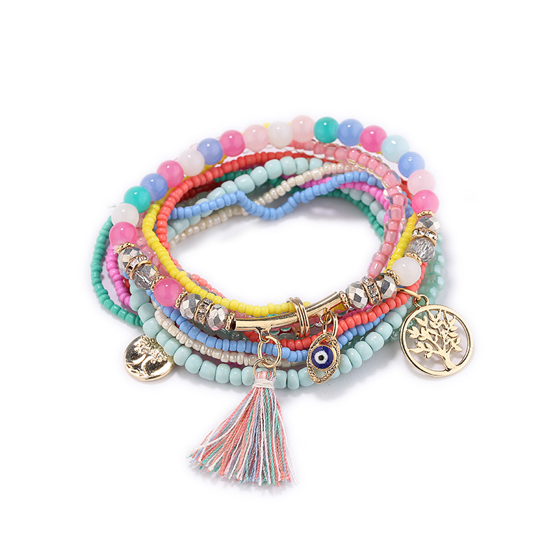 Material: rice beads + alloy + glass beadsStyle: simple and stylishFeatures: Hand-beadedColour: white, blue, black, pink, colorful, rose red