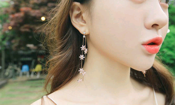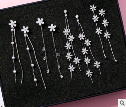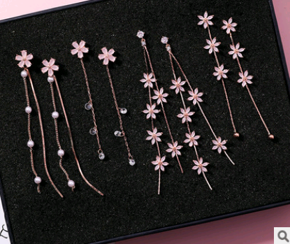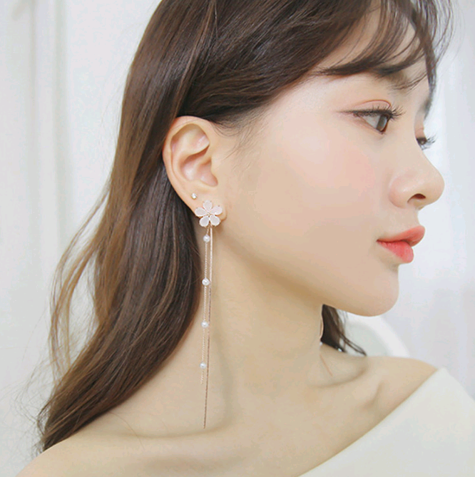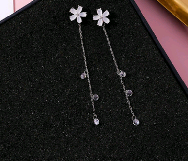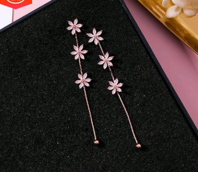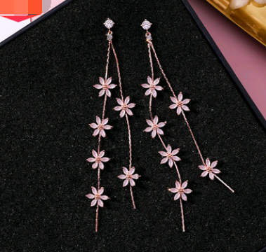 925 Silver Needle Crystal Cherry Petals Long Tassel Earrings Frosted Diamond Zircon Flower Earrings Female