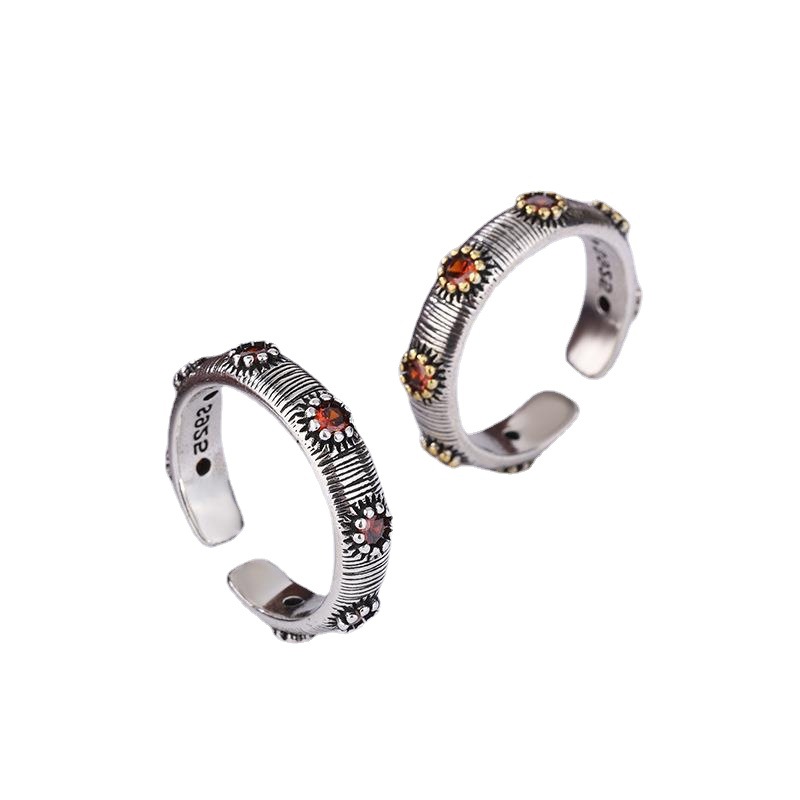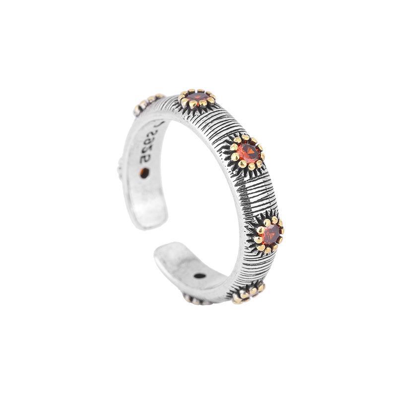 Product information:Color: texture zircon flower ringApplicable people: UnisexSize: adjustable openingStyle: Women'sMaterial: MetalShape: FlowerPopular elements: patternStyle: ethnic style