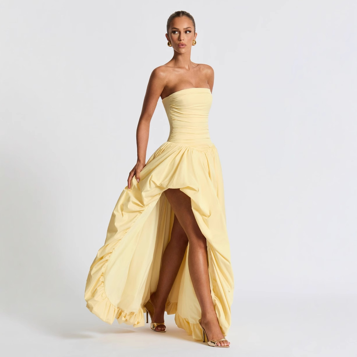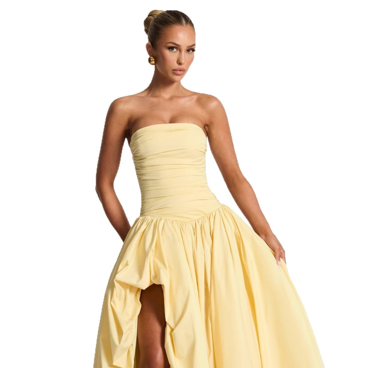 Product information:Pattern: solid color Skirt type: A- line skirt Color: yellow Waist type: high waist Size: XS,S,M,L Fabric name: Polyester Skirt Category: Dress