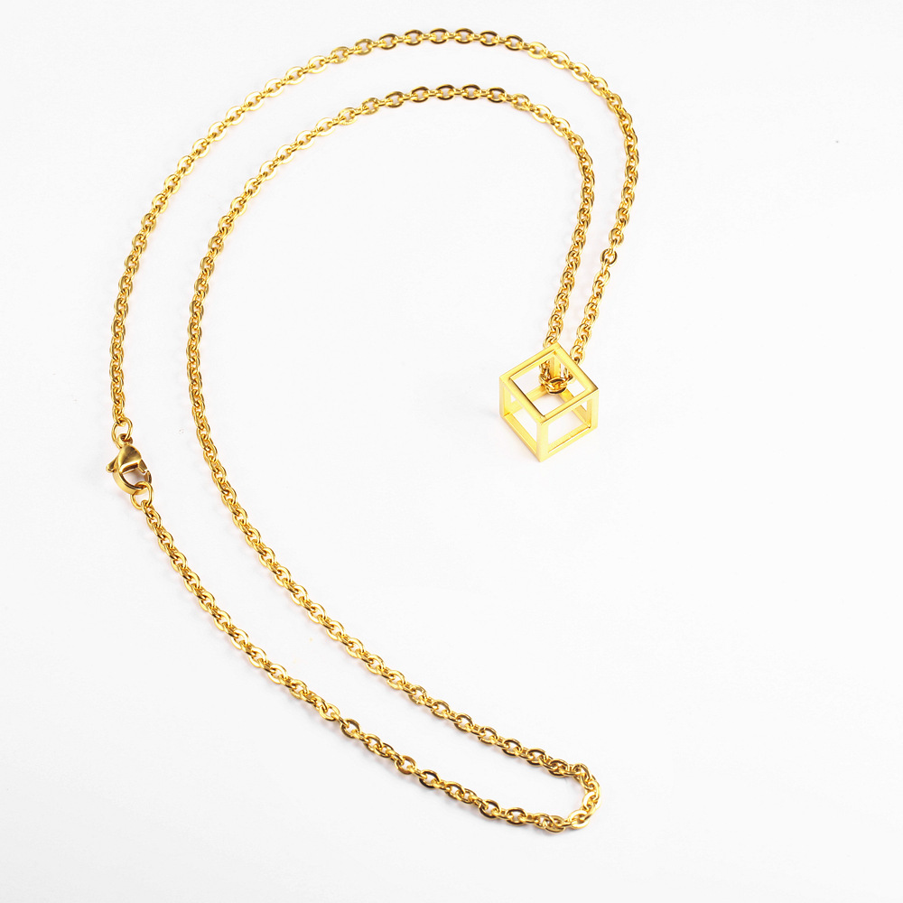 Product informationName: Cube Hollow Love Rubik's Cube NecklaceItem No.: LP1736Material: titanium steelColor: gold, silver, ancient silverSize: chain length 60cmWeight: 2gPacking listCube necklace*1