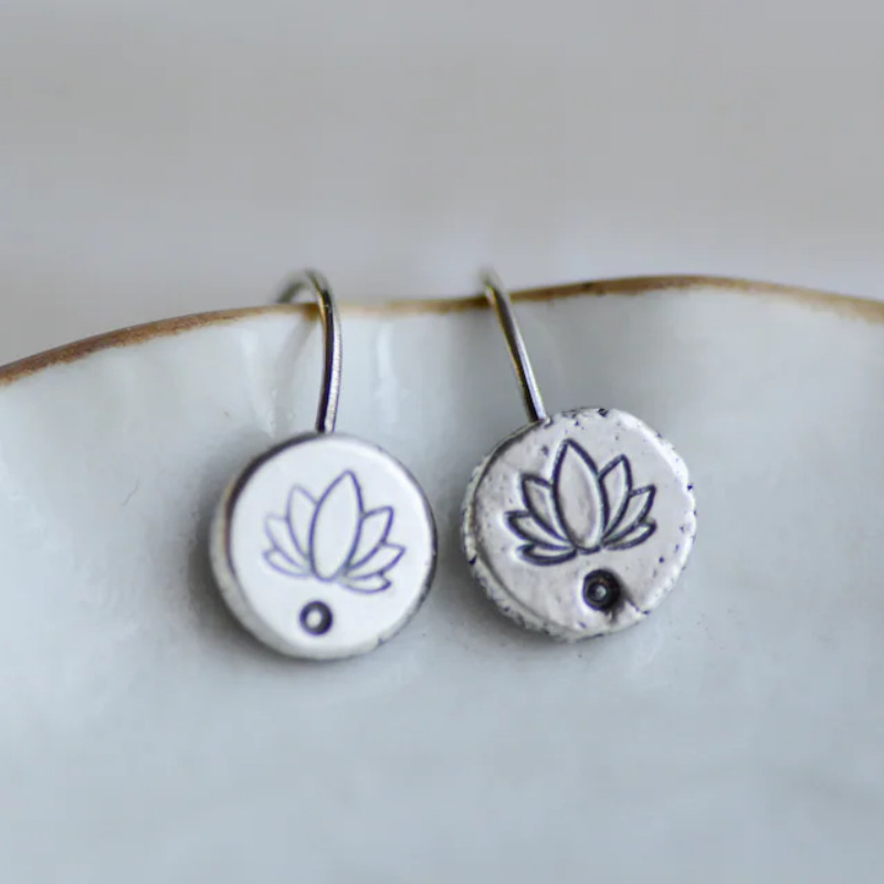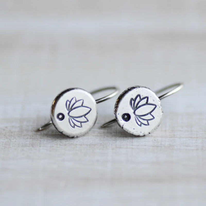 Retro Ethnic Style Round Plant Lotus Pendant Earrings