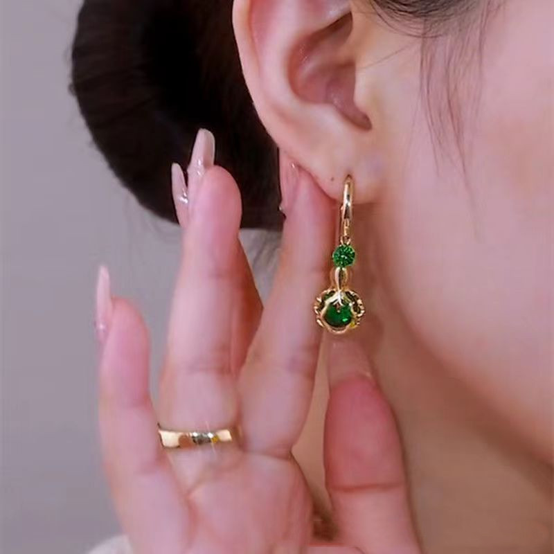 Women's Fashion Temperament Green Crystal Earrings