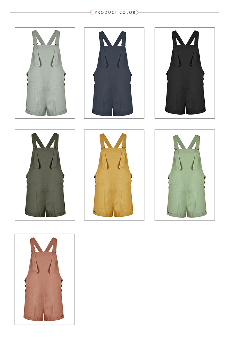 USA SIZE Women's Vintage Solid Color Shorts Bib Jumpsuit