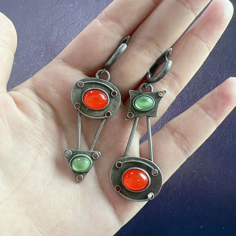 Product information:Color: Orange, Lake Blue Applicable population: Female Material: Metal Shape: Geometry Popular elements: round Style: Retro