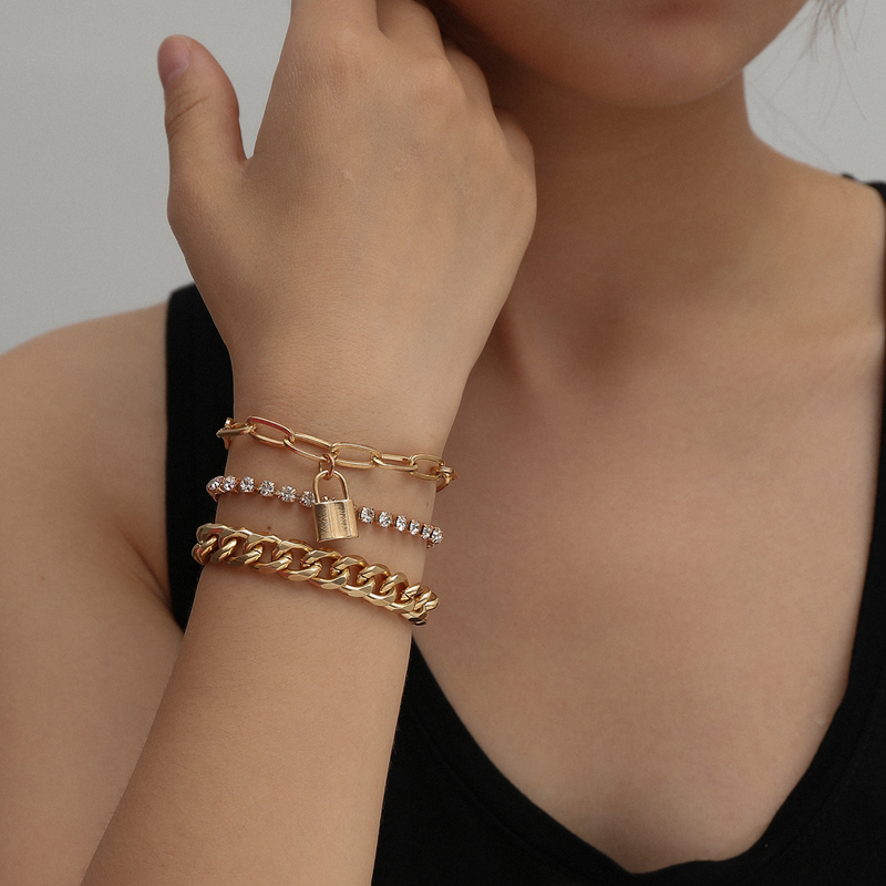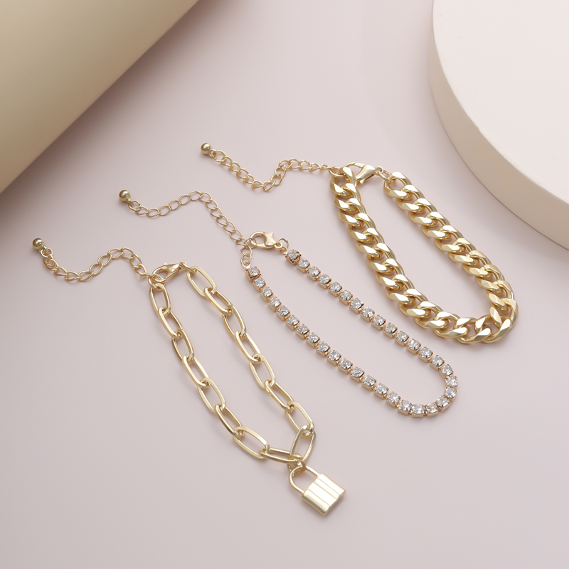 Set of 3 diamond-set bracelets with small lock