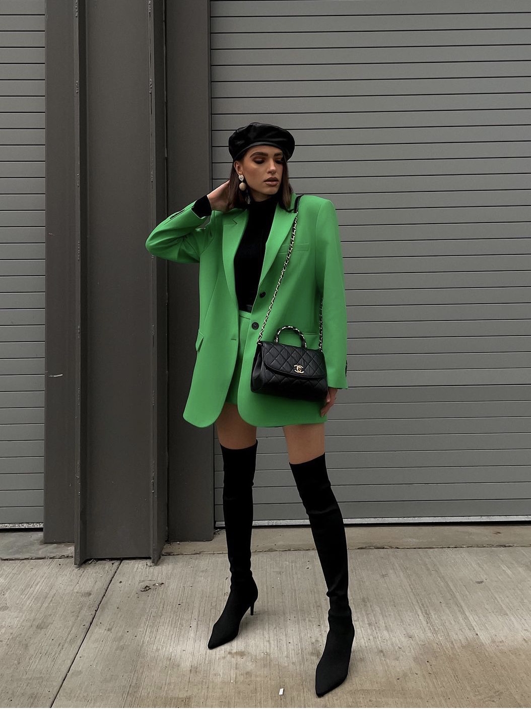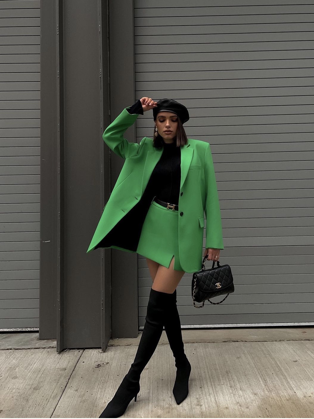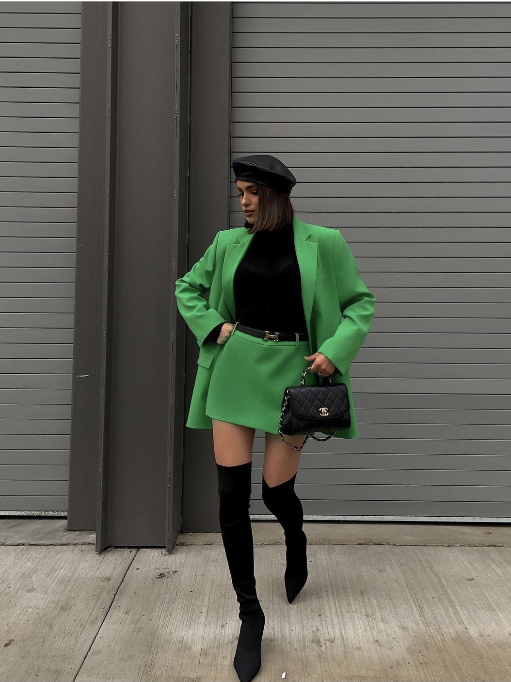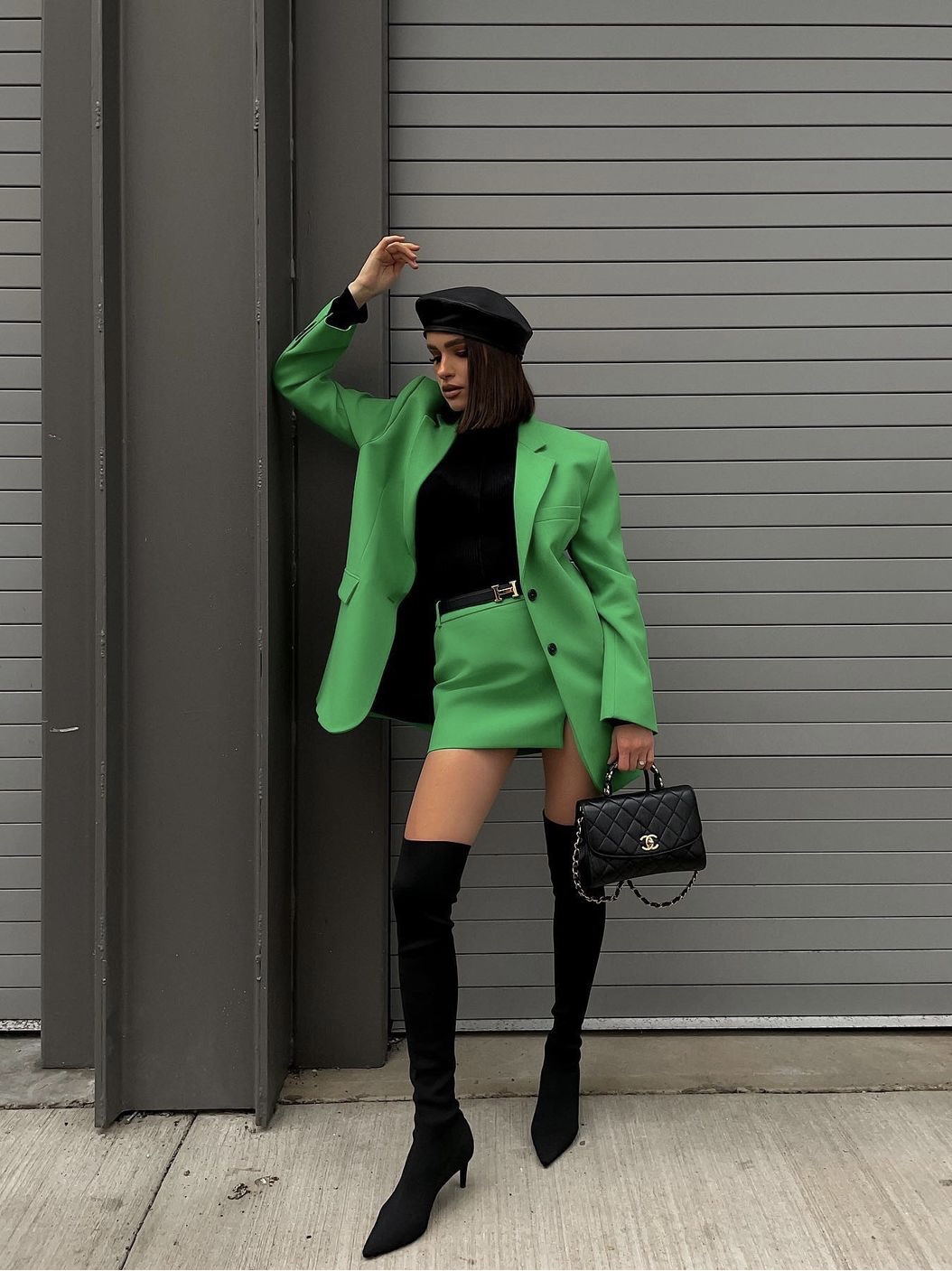 Color: suit, short skirt