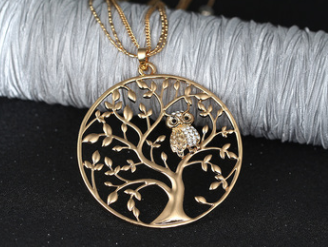 European and American personality owl pendant necklace Cross-border for creative life tree hollow sweater chain pendant