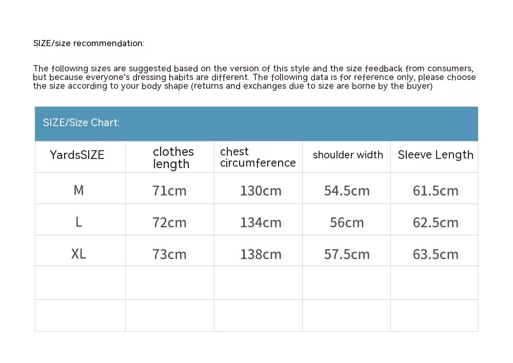 1. Asian sizes are 1 to 2 sizes smaller than European and American people. Choose the larger size if your size between two sizes. Please allow 2-3cm differences due to manual measurement. 2. Please check the size chart carefully before you buy the item, if you don't know how to choose size, please contact our customer service. 3.As you know, the different computers display colors differently, the color of the actual item may vary slightly from the following images.