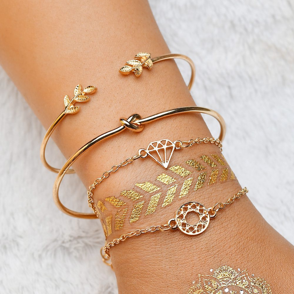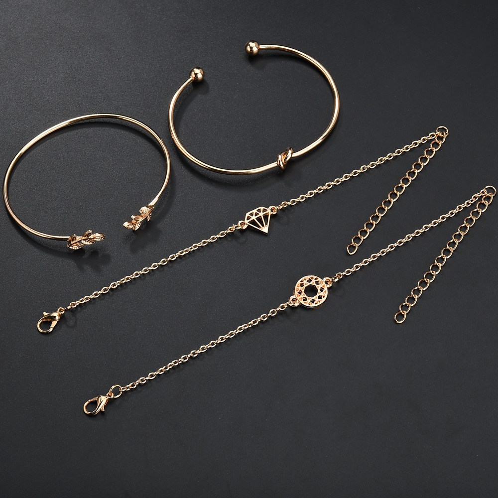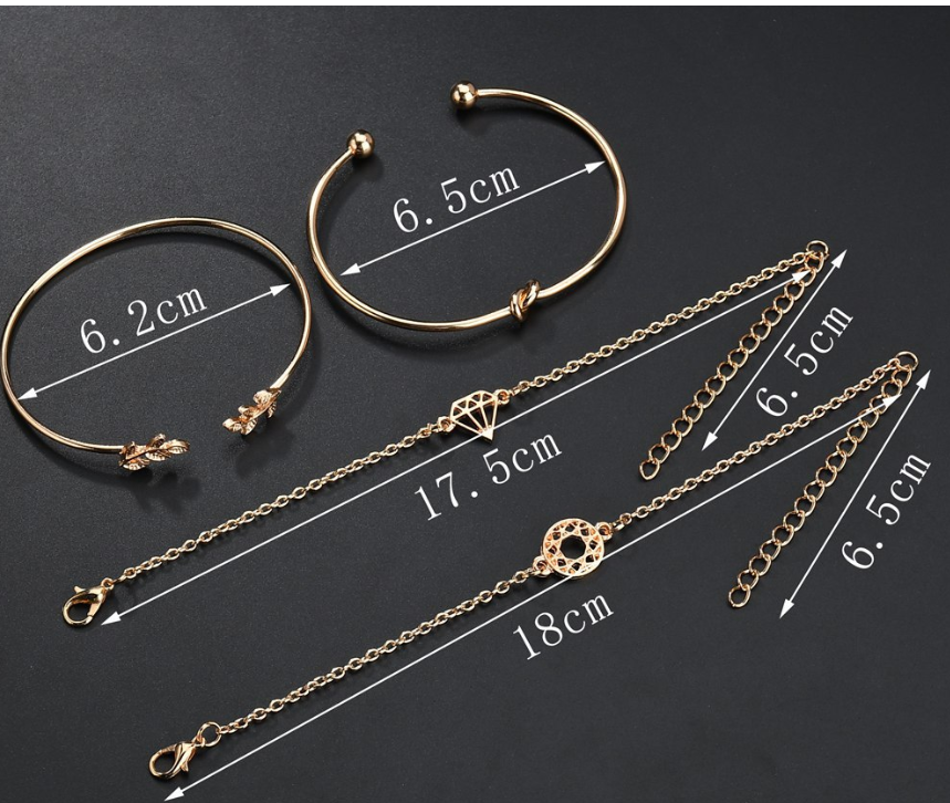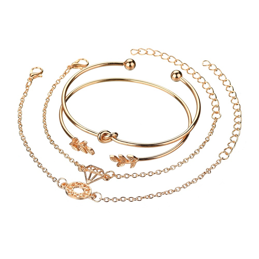 Aliex WISH fashion popular new women's cute leaves hollow round opening bracelet bracelet set