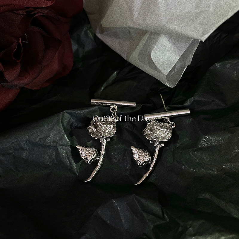 Style: Retro/PalaceMaterial: Alloy/Silver Plated/Gold PlatedTreatment process: electroplatingType: Rose Stud EarringsStyle: Women'sModeling: Plants and flowersSize: 3.7CM