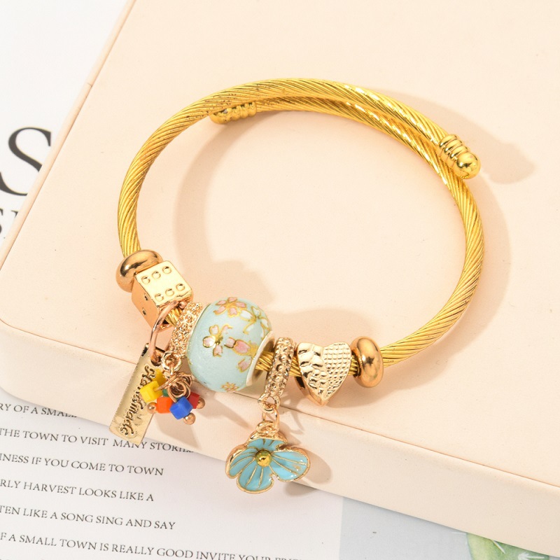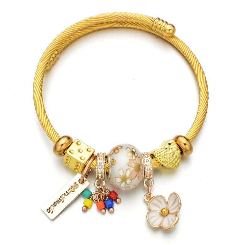 Korean gold stainless steel ceramic bead bracelet