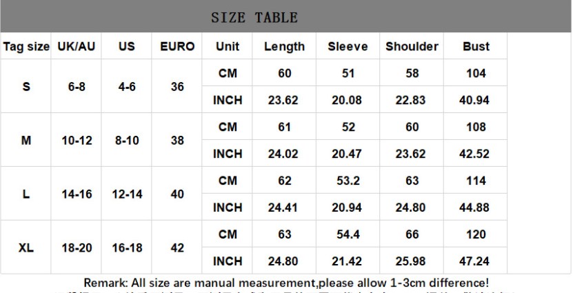 1. Asian sizes are 1 to 2 sizes smaller than European and American people. Choose the larger size if your size between two sizes. Please allow 2-3cm differences due to manual measurement.
