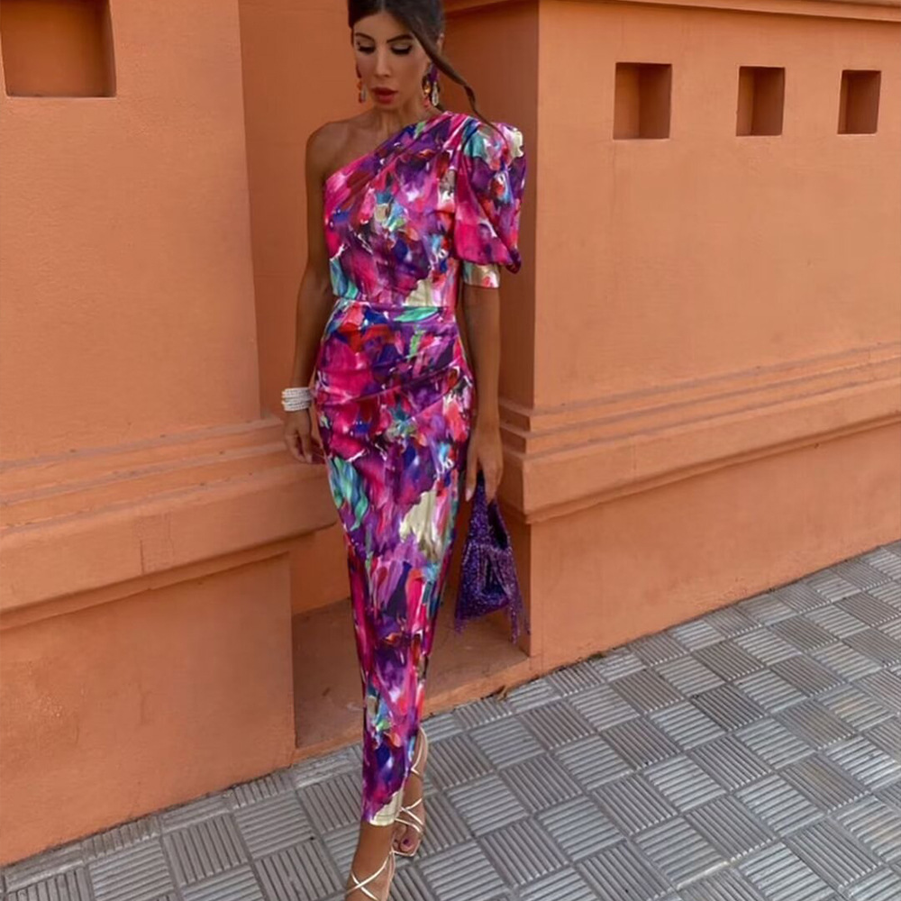 Women's Fashion French Asymmetric Short Sleeve Dress