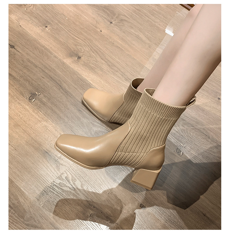 Toe shape: square toeHeel shape: thick heelHeel height: middle heel (3-5CM)Popular elements: leather stitchingTube height: low tubeInsole material: PUMaterial inside the boot: PU