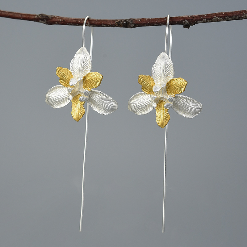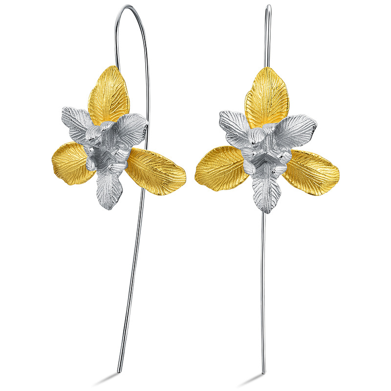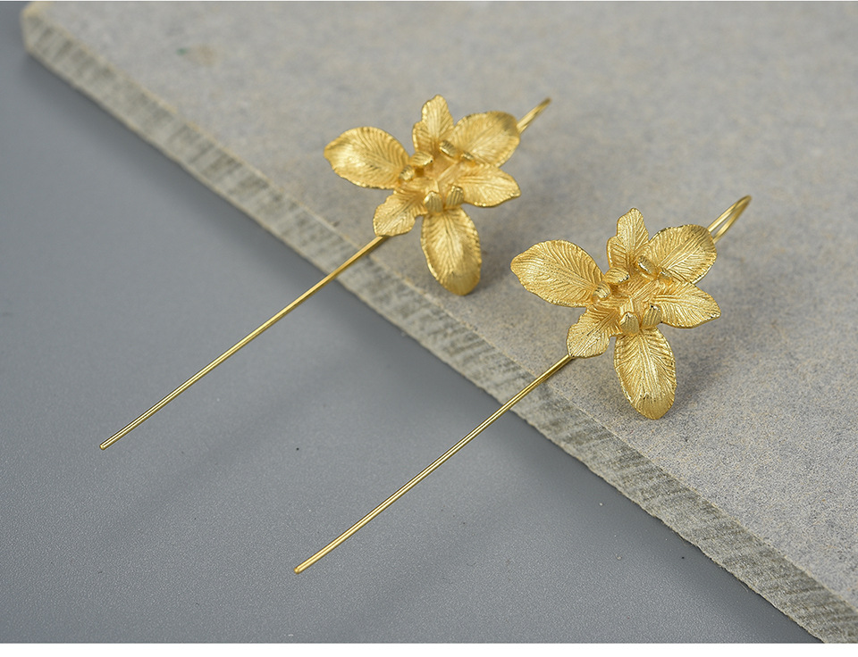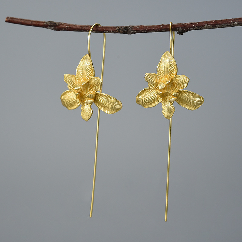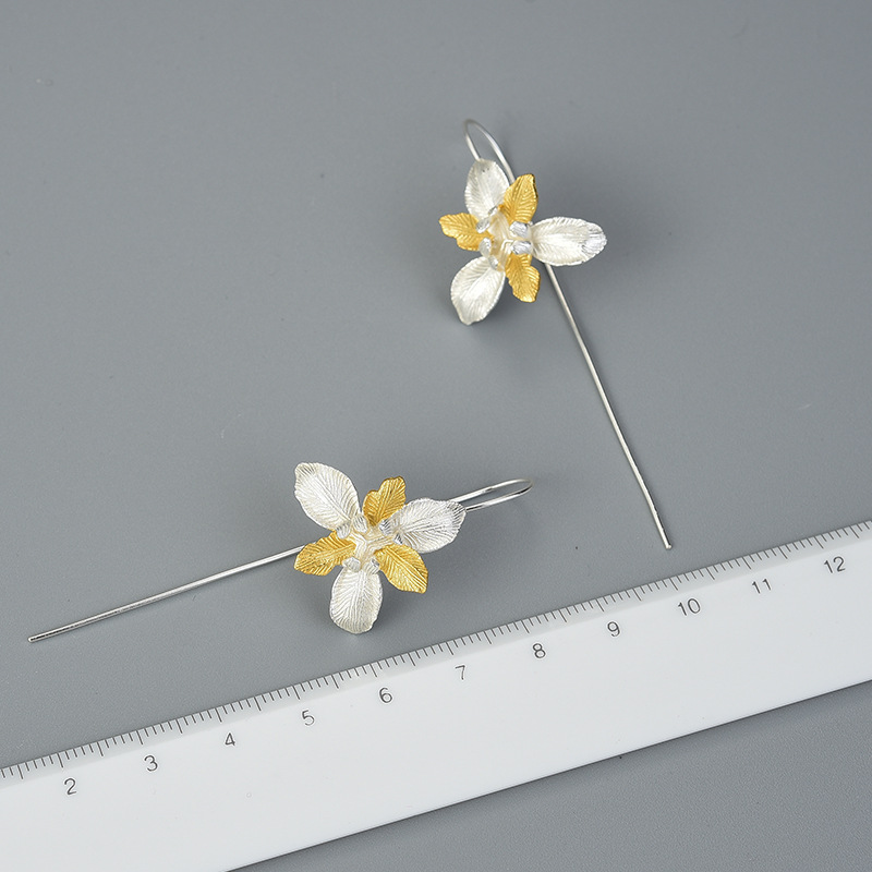 Enamored iris flower sterling silver earrings