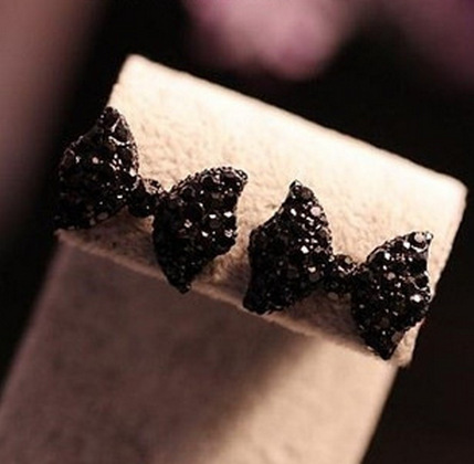 Women's Black Bow Stud Earrings