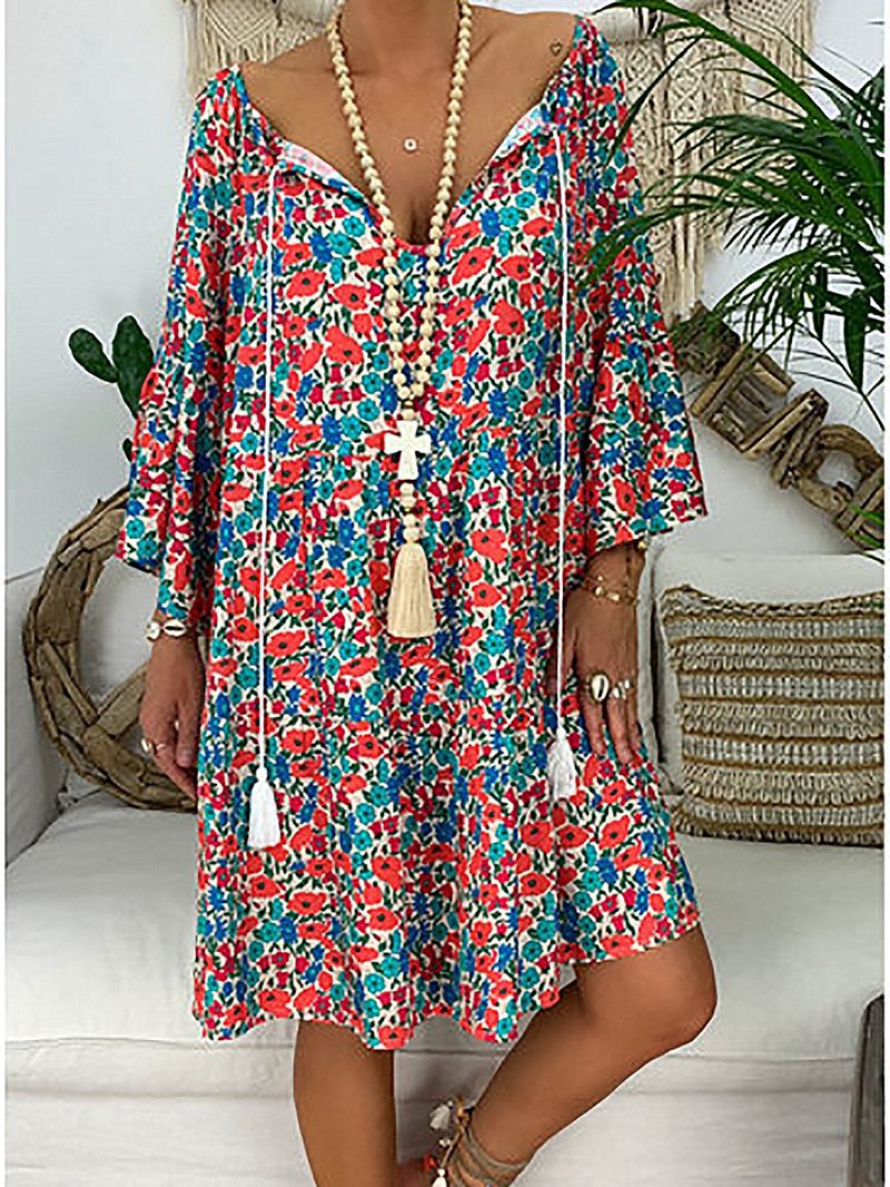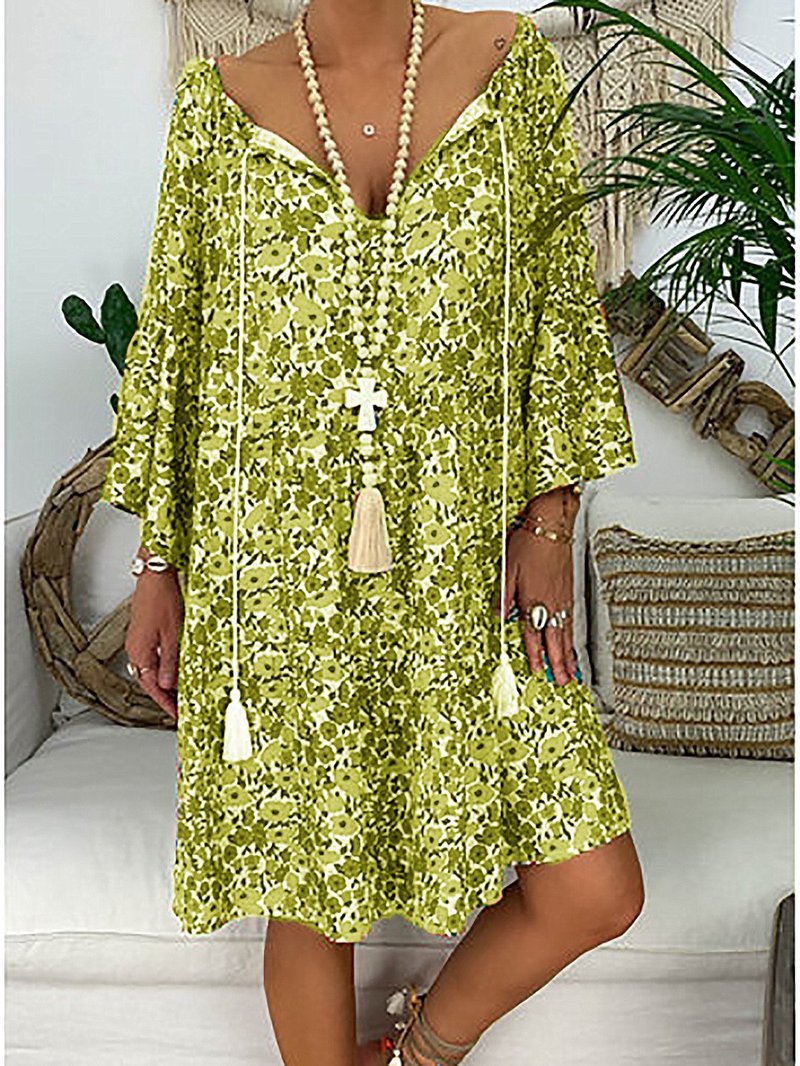 European and American women's five-point sleeve V-neck princess dress