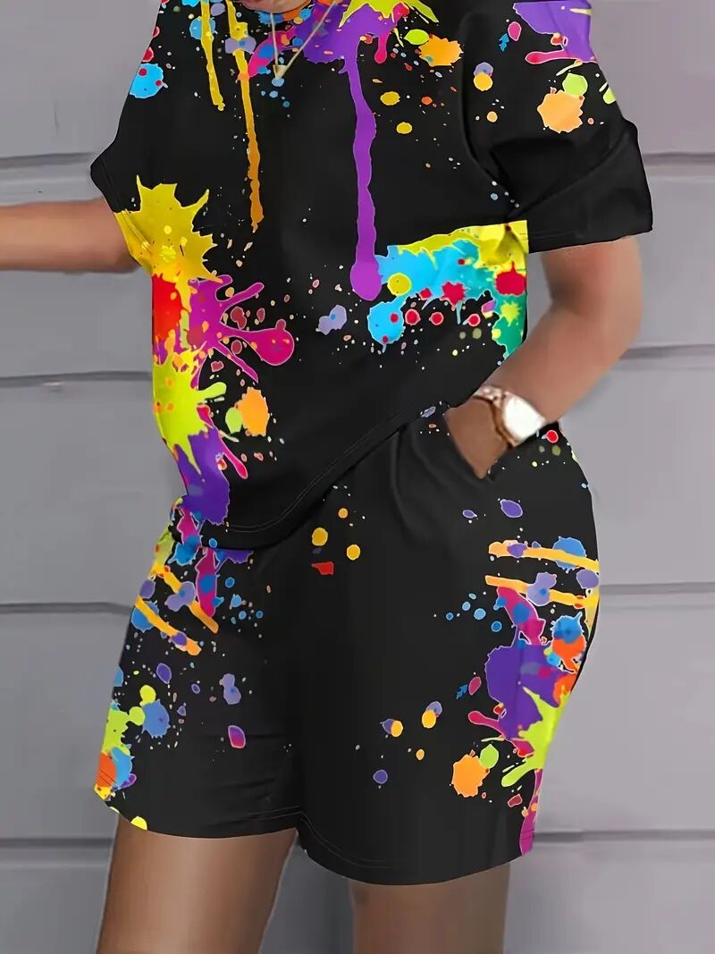 Women'S Two-Piece Set Featuring A Stylish Printed T-Shirt And Casual Shorts