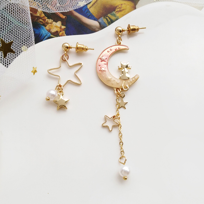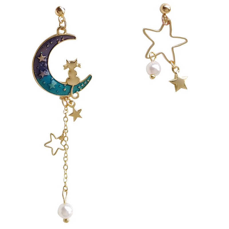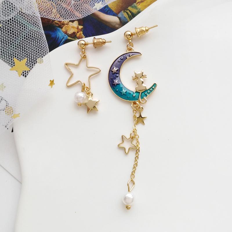 Beautiful Fantasy Starry Sky Moon Fashion Wild Metal Earrings
