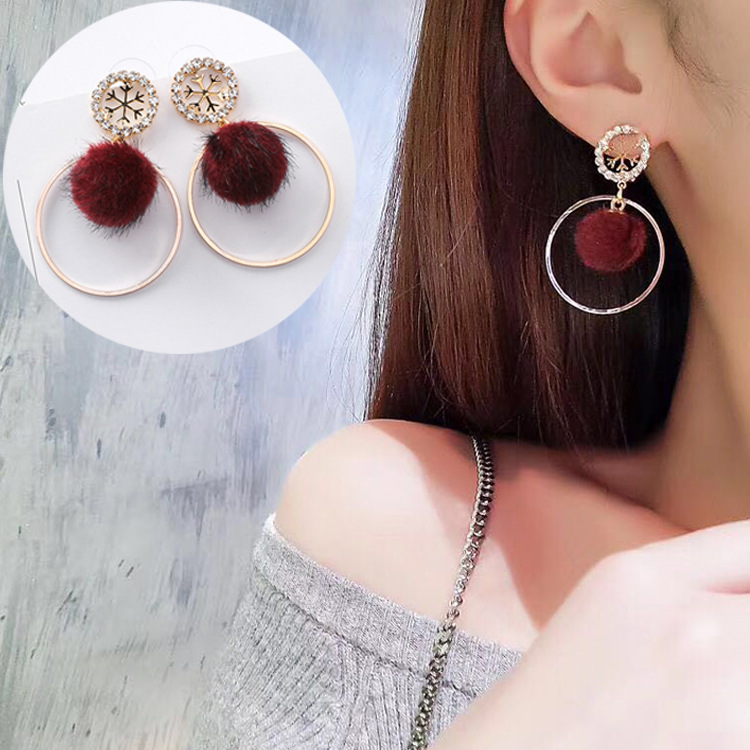 Geometric ring snowflake earrings simple personality plush ball earrings