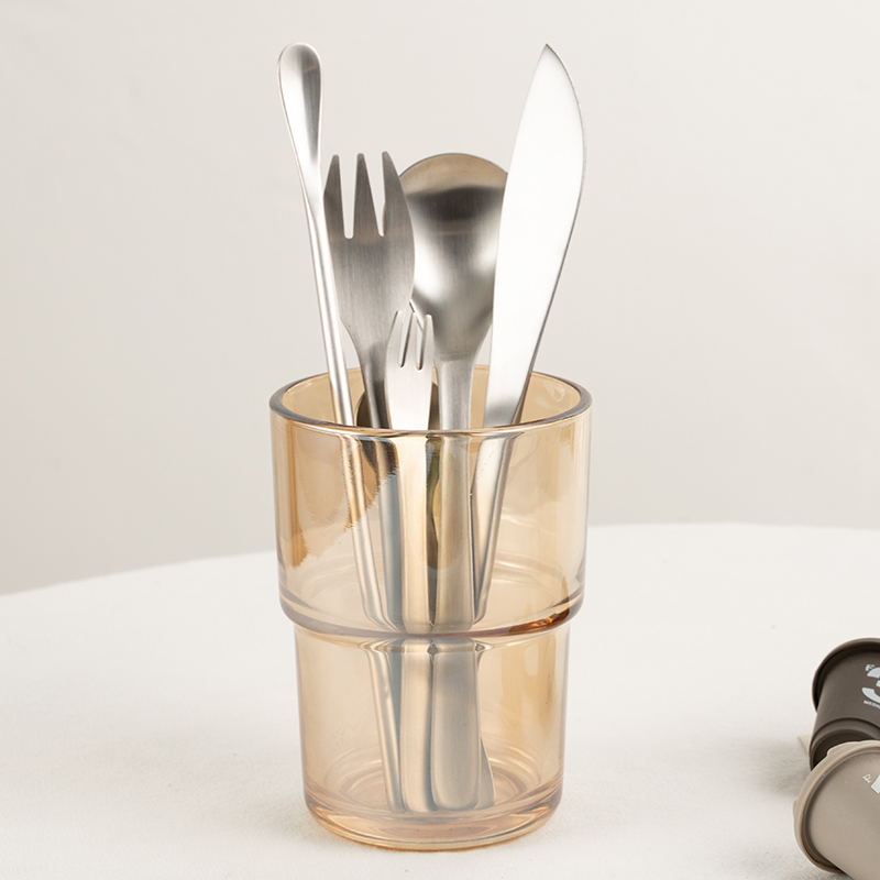 Material: Stainless steelColor classification: Main table knife, main table fork, main table spoon, long handle spoon, fruit fork, coffee spoonProduct: Steak Knives and Forks