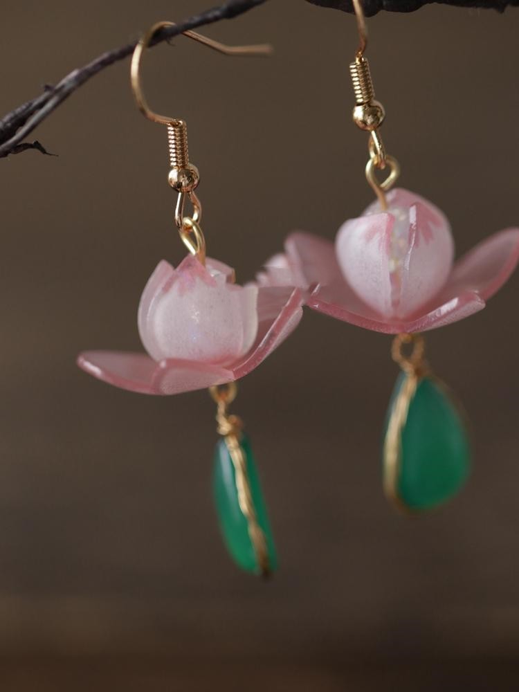 Product information:Style: Retro/Court Color classification: pink earrings, ear clip spiral Earrings are about 5.2cm long Material: Copper-plated gold Heat Shrinkable green water drop Jade, etc.