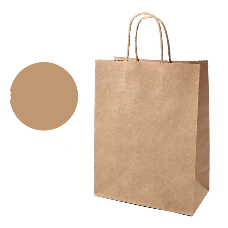 Product information :Material: 140g full wood pulp yellow kraft paperTechnology: bronzing, silk screen printing and offset printing.Size Information:Dimensions: 15x8x21cm, 21x11x27cm, 26x12x32cmPacking list:Paper packaging *10