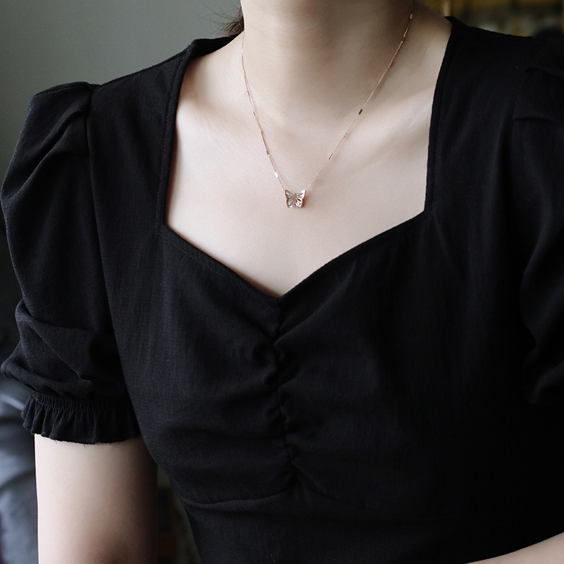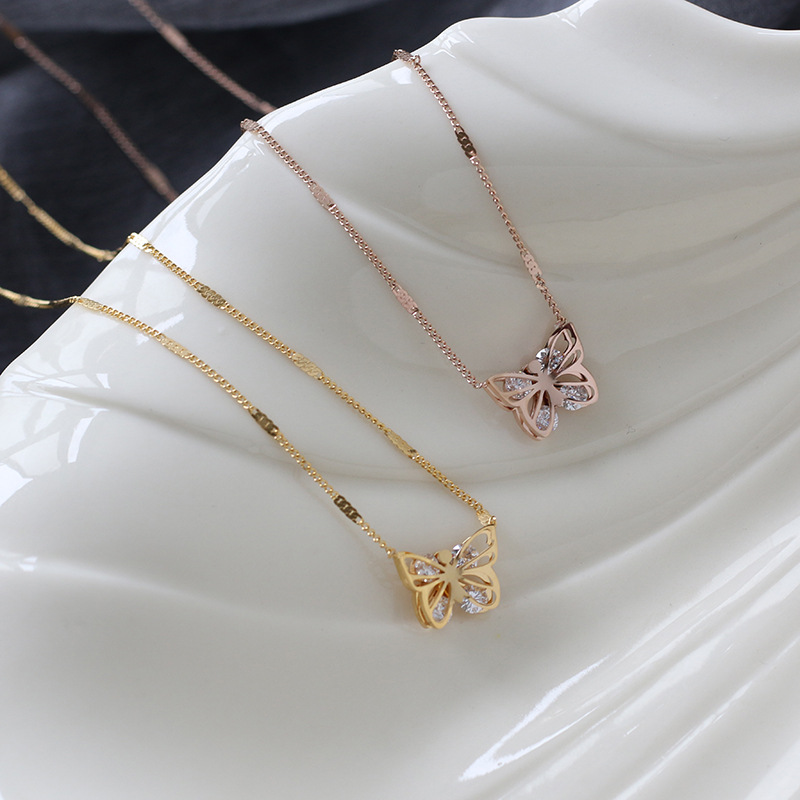 Product information:Material: titanium steelType: NecklaceStyle: Women'sStyle: ButterflyColor: gold, rose goldPackage:Stainless Steel Necklace X1