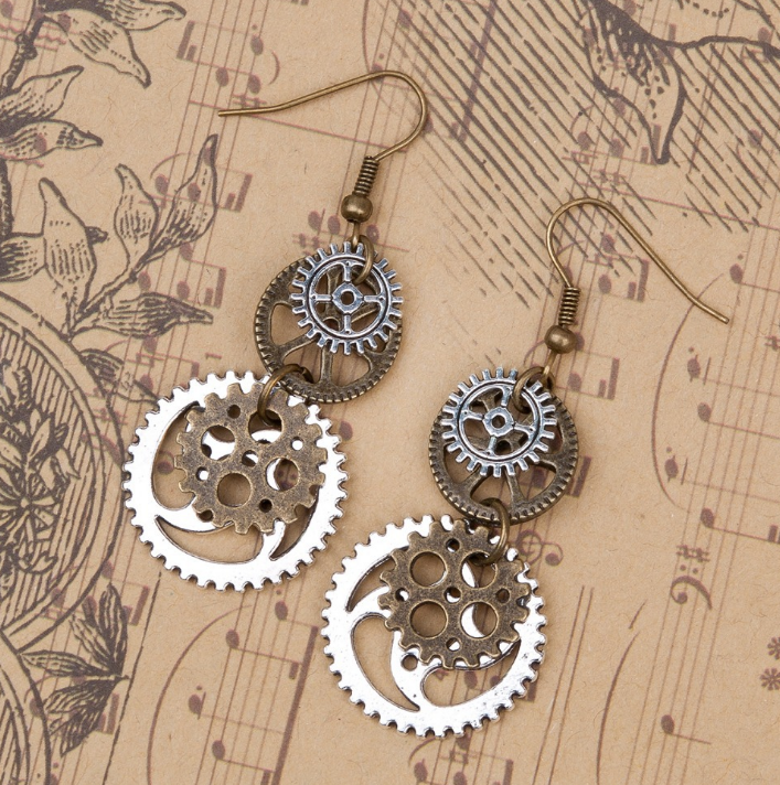 Antique Bronze Gear Steampunk Earrings