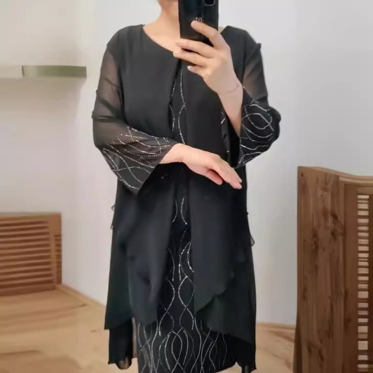 Product information:Pattern: stitching Skirt type: A- line skirt Color: black, green, royal blue, dark blue Waist type: wide waist Size: S,M,L,XL,2XL,3XL,4XL,5XL Fabric name: Polyester Skirt Category: Dress