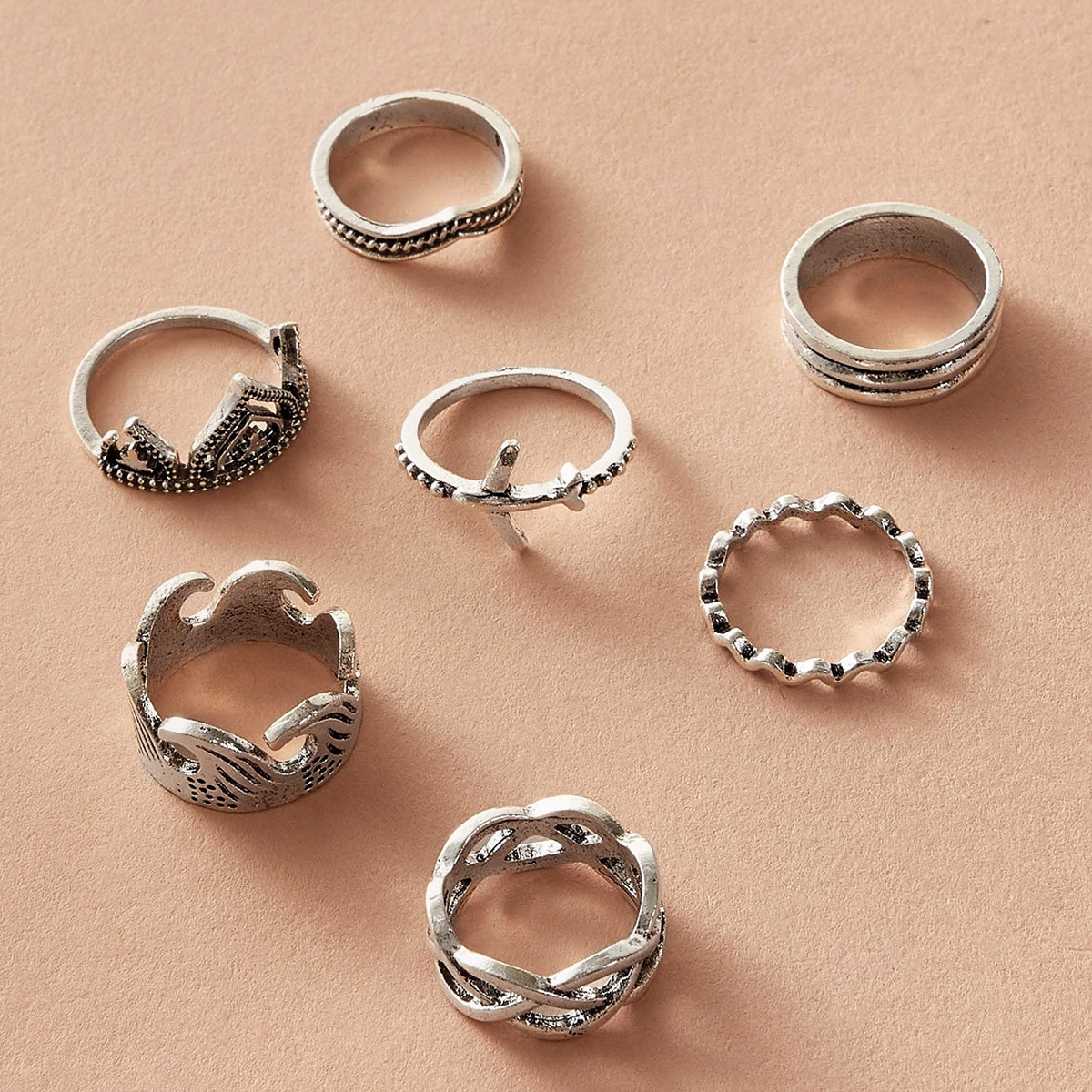 Product informationType: Rings, RingsMaterial: AlloyStyle: European and AmericanModeling: GeometryTreatment process: electroplatingPackaging: Individually packedPacking listRing set x1